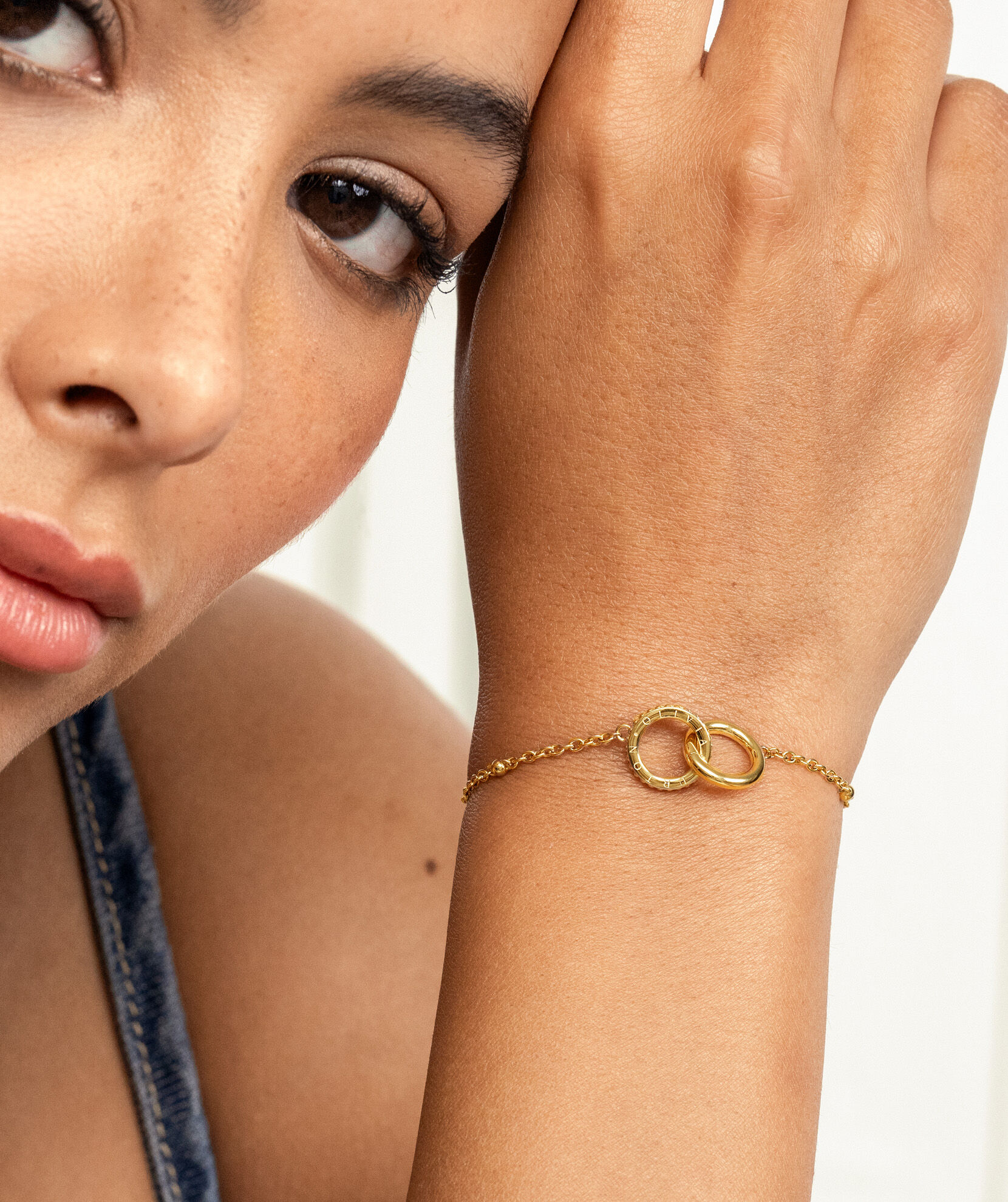 Get ready for an elegant new take on our best selling Interlink Collection. Symbolising eternity and togetherness, this gold-plated bracelet features interlocking rings embellished with tiny caviar beads for a truly timeless feel. Finished with an on-trend beaded chain, this meaningful piece makes the perfect gift or self-love treat.