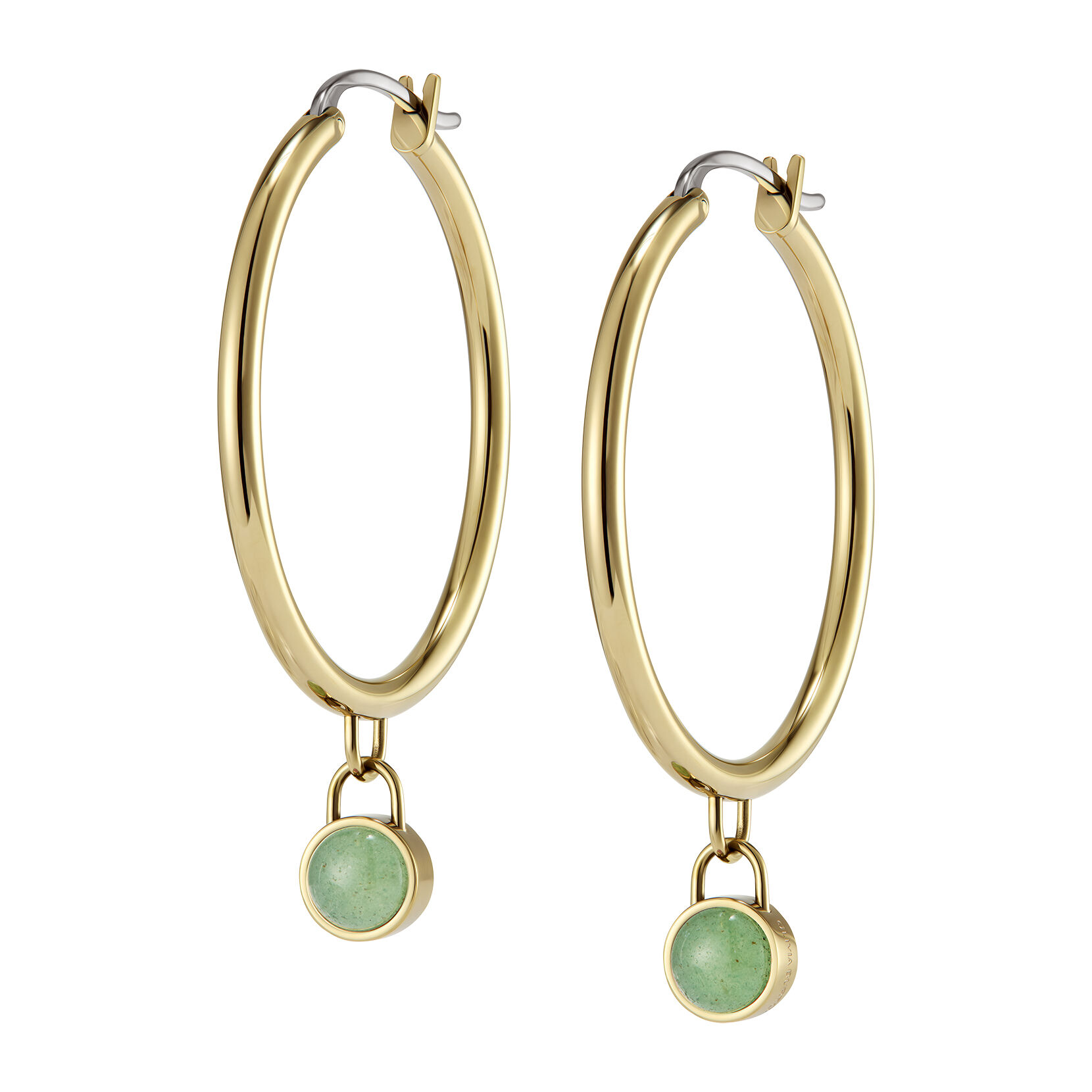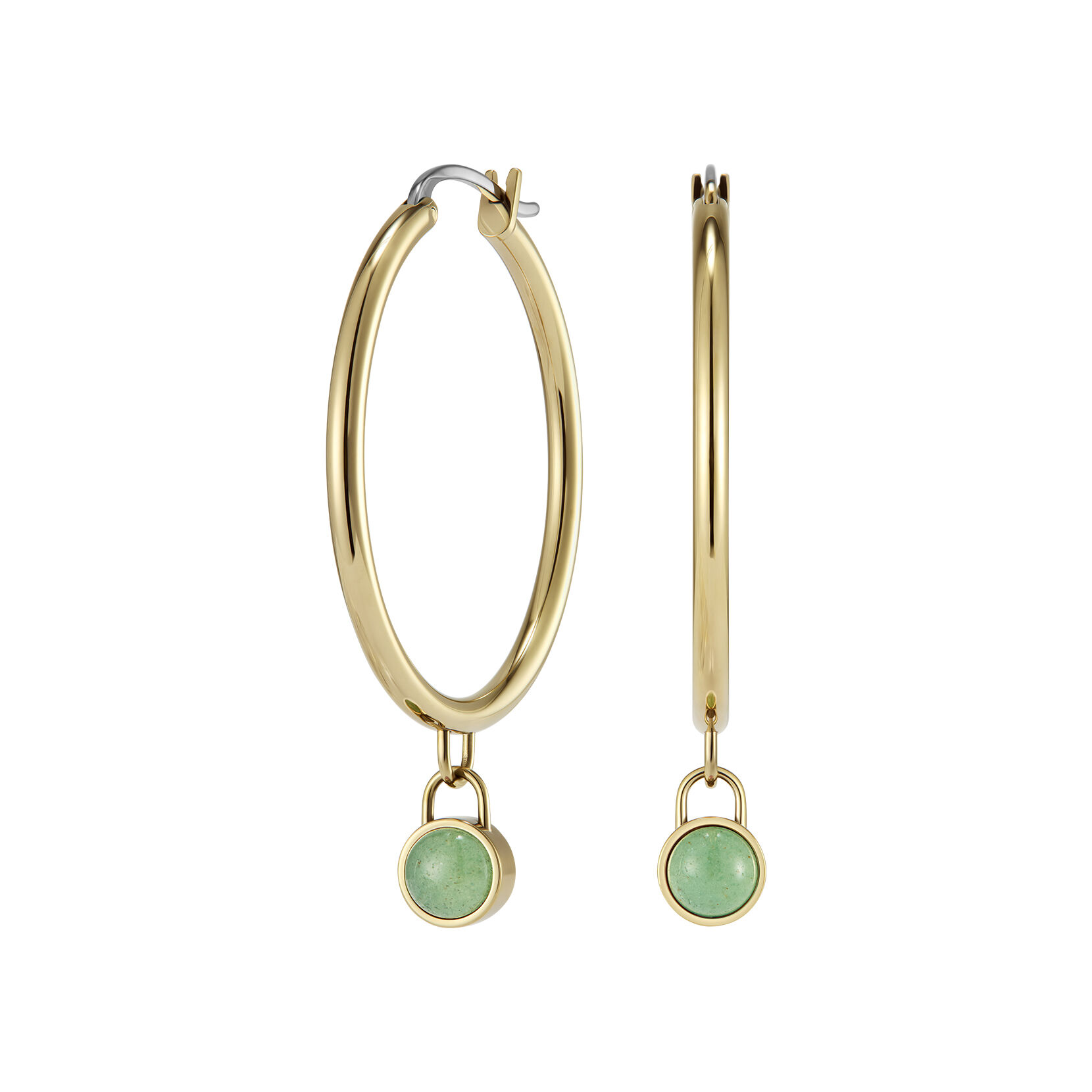 Olivia Burton Jewelry Aventurine Cabochon Gold Plated Gemstone Hoop Earrings
