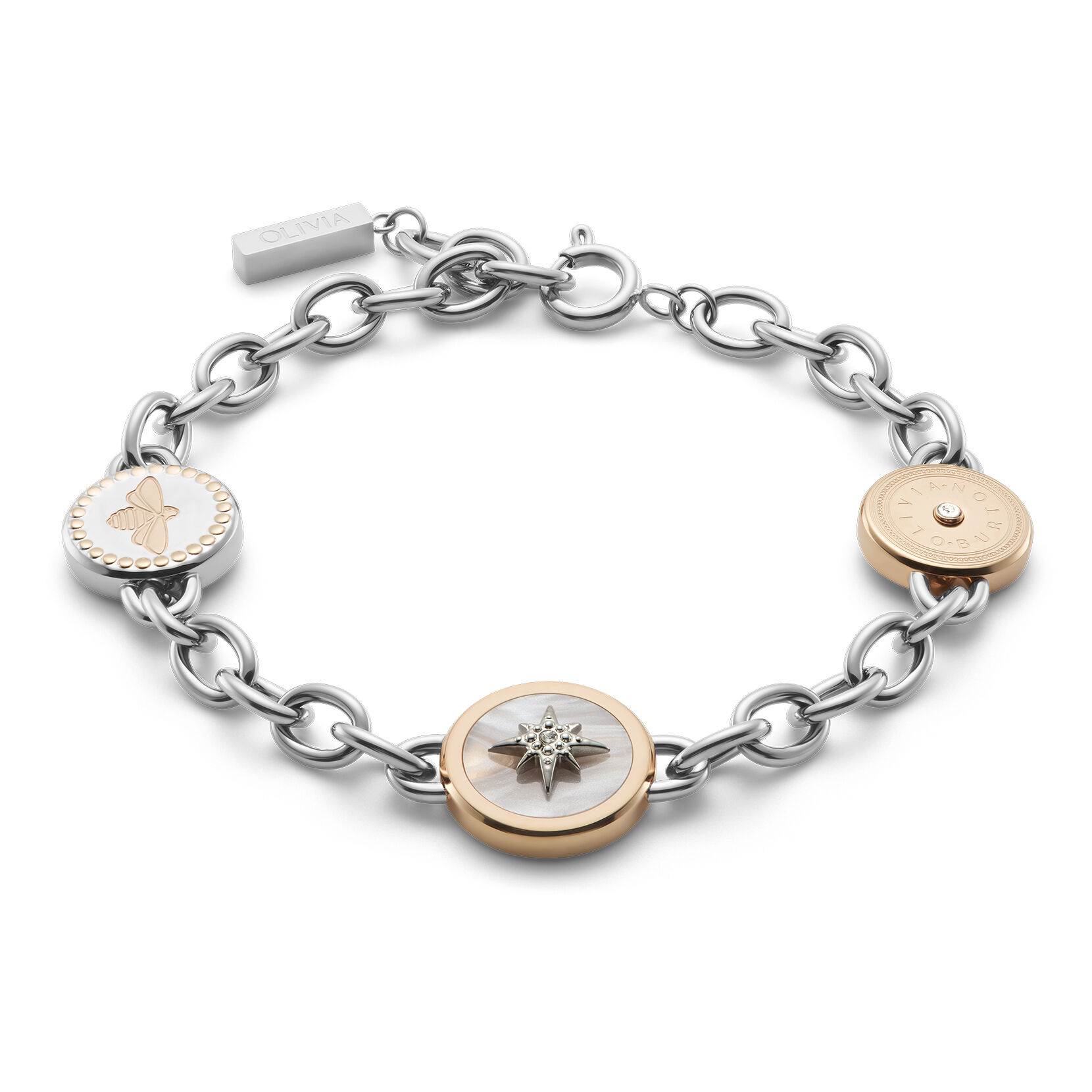 Olivia Burton Jewelry Bee And North Star Silver & Rose Gold Plated Charm Bracelet
