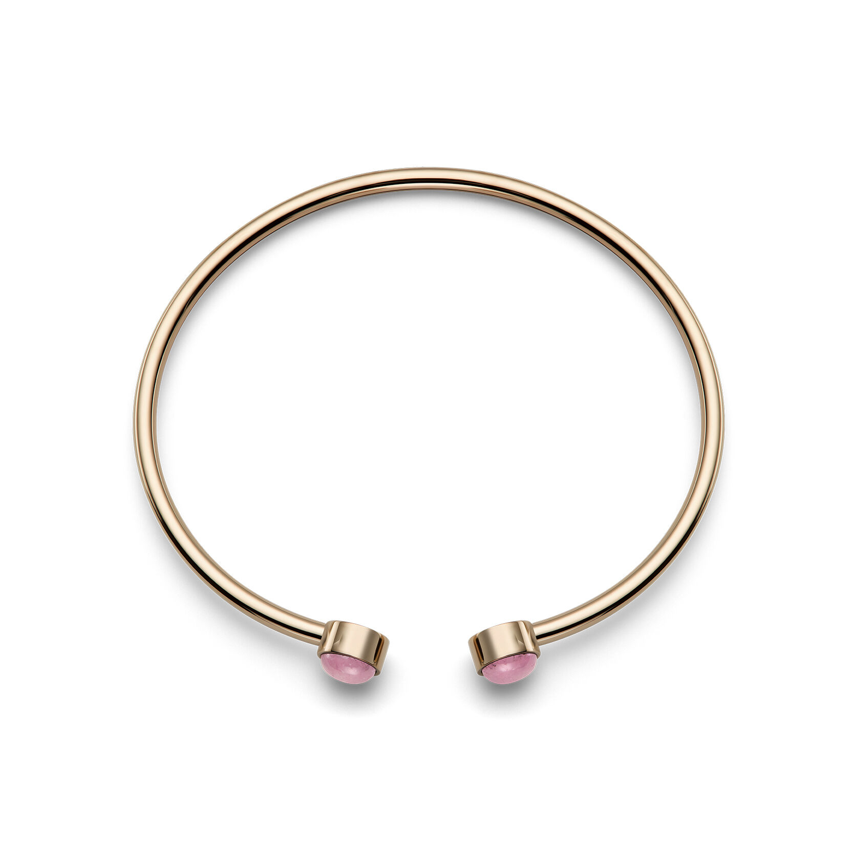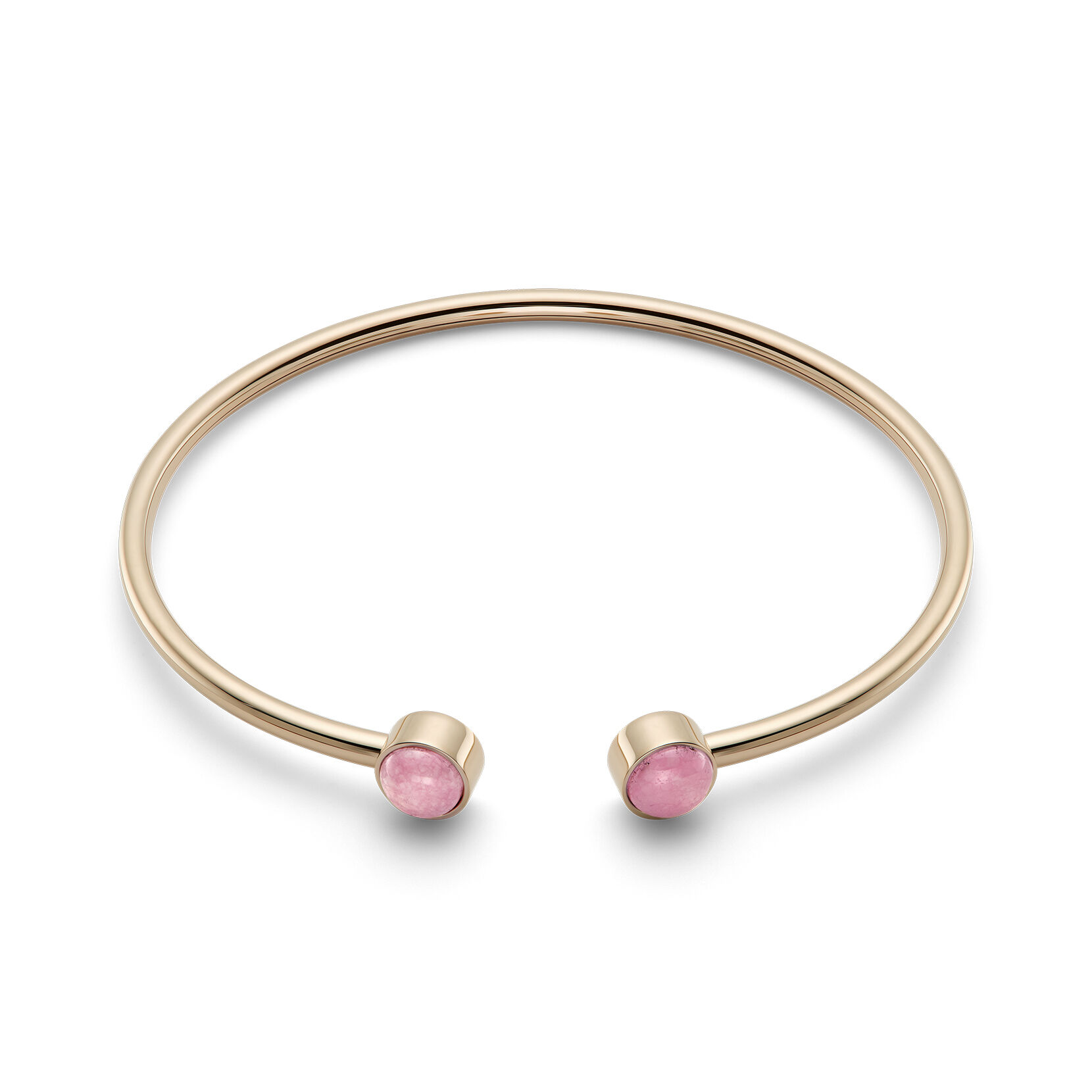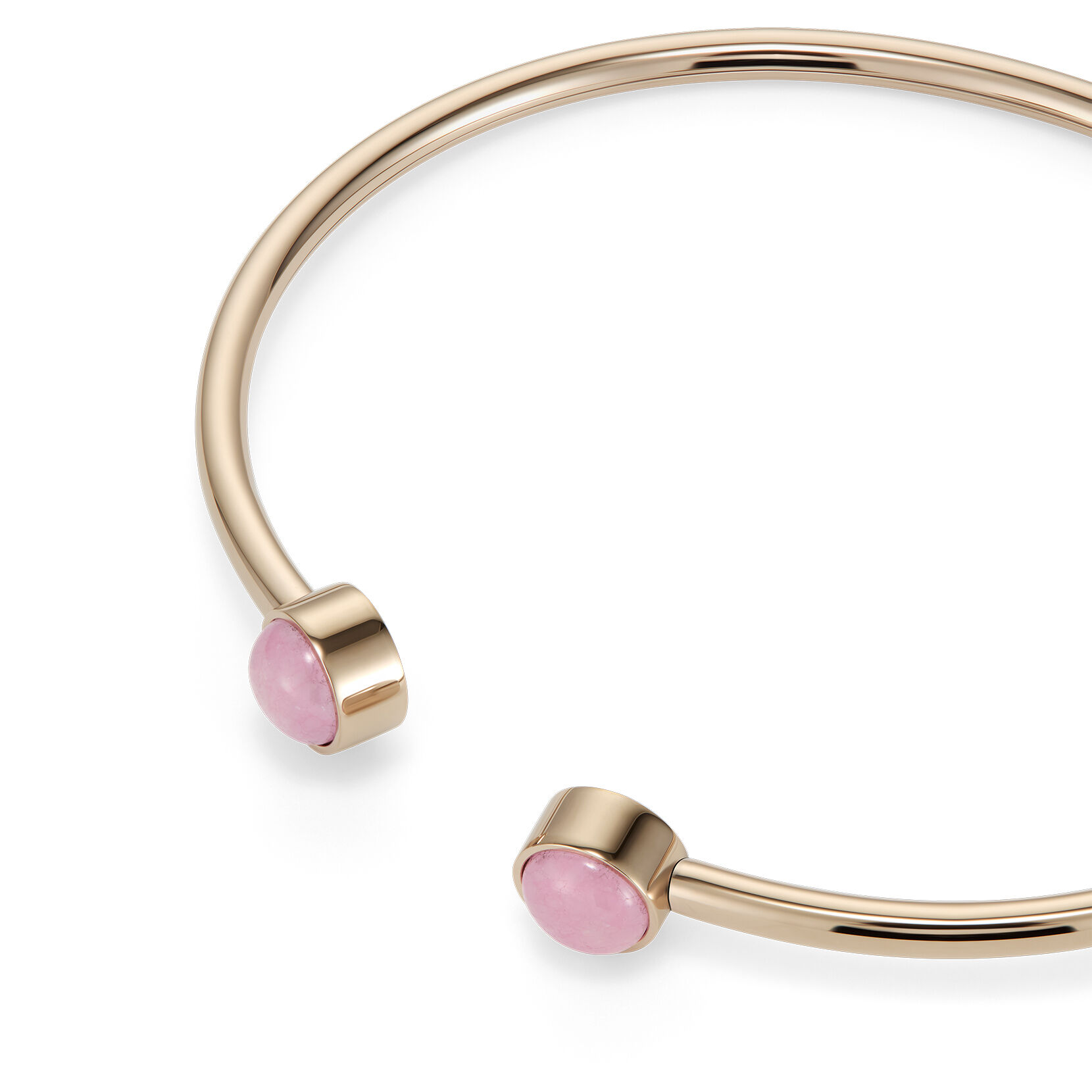 Channel the power and beauty of Rose Quartz with our collection of semi-precious gemstones. This double-ended rose gold-plated bangle features two cabochon-set Rose Quartz gemstones, believed to bring love and healing, this meaningful piece makes a gorgeous gift and brings color to any jewelry wardrobe.