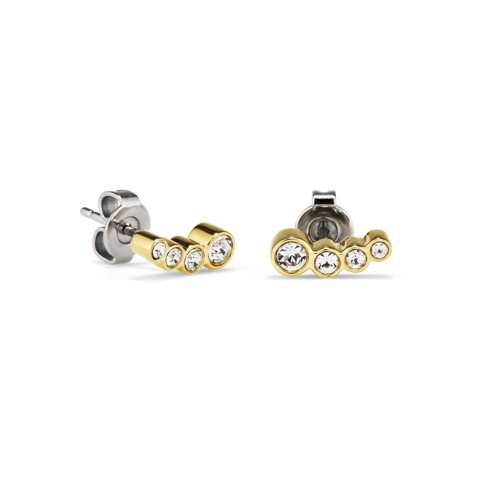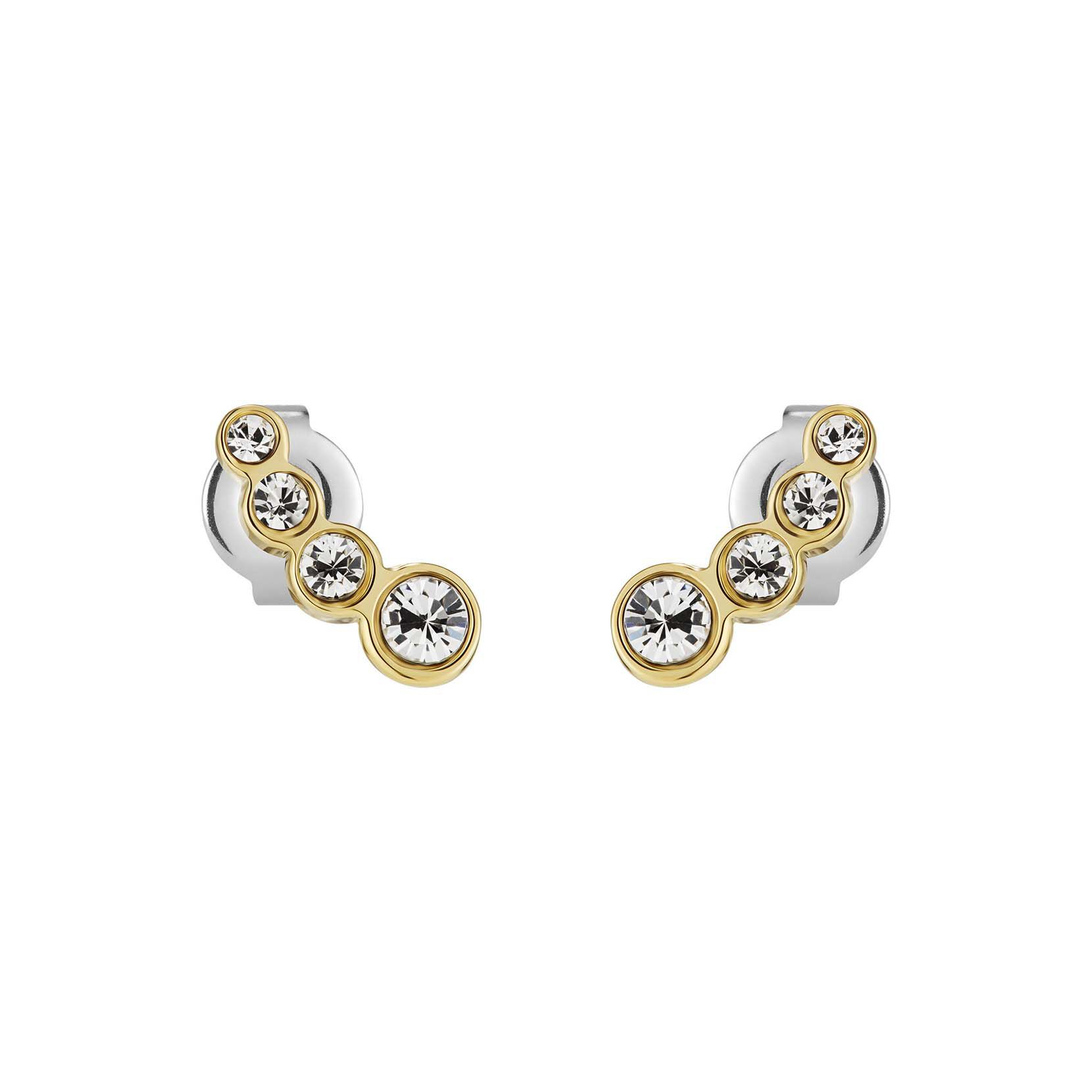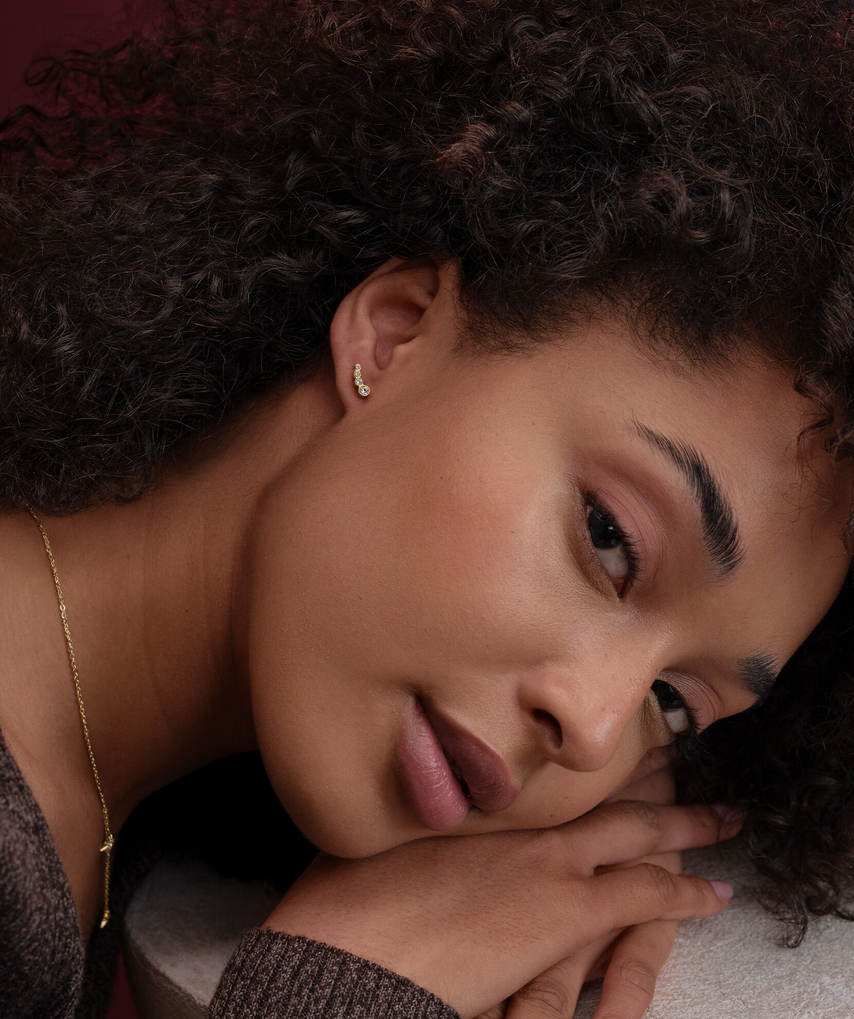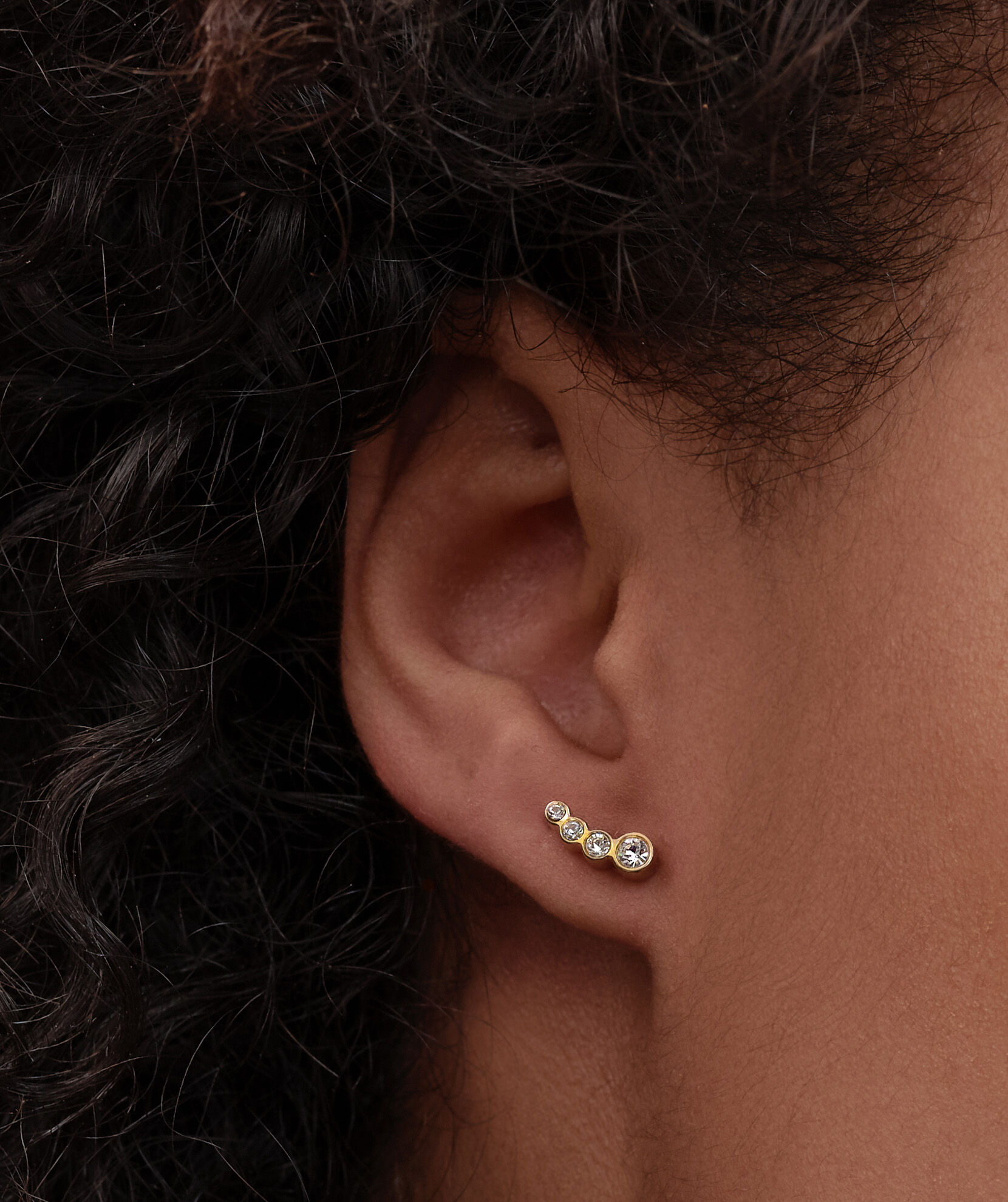 Upgrade your ear stack with this clever crawler earring. These gold-tone stud earrings feature a trio of graduated crystals that curve gently up the earlobe giving the look of multiple piercings in just one earring. Team with our Soft Square Hoops and Star Chain Earrings for an effortless stack.