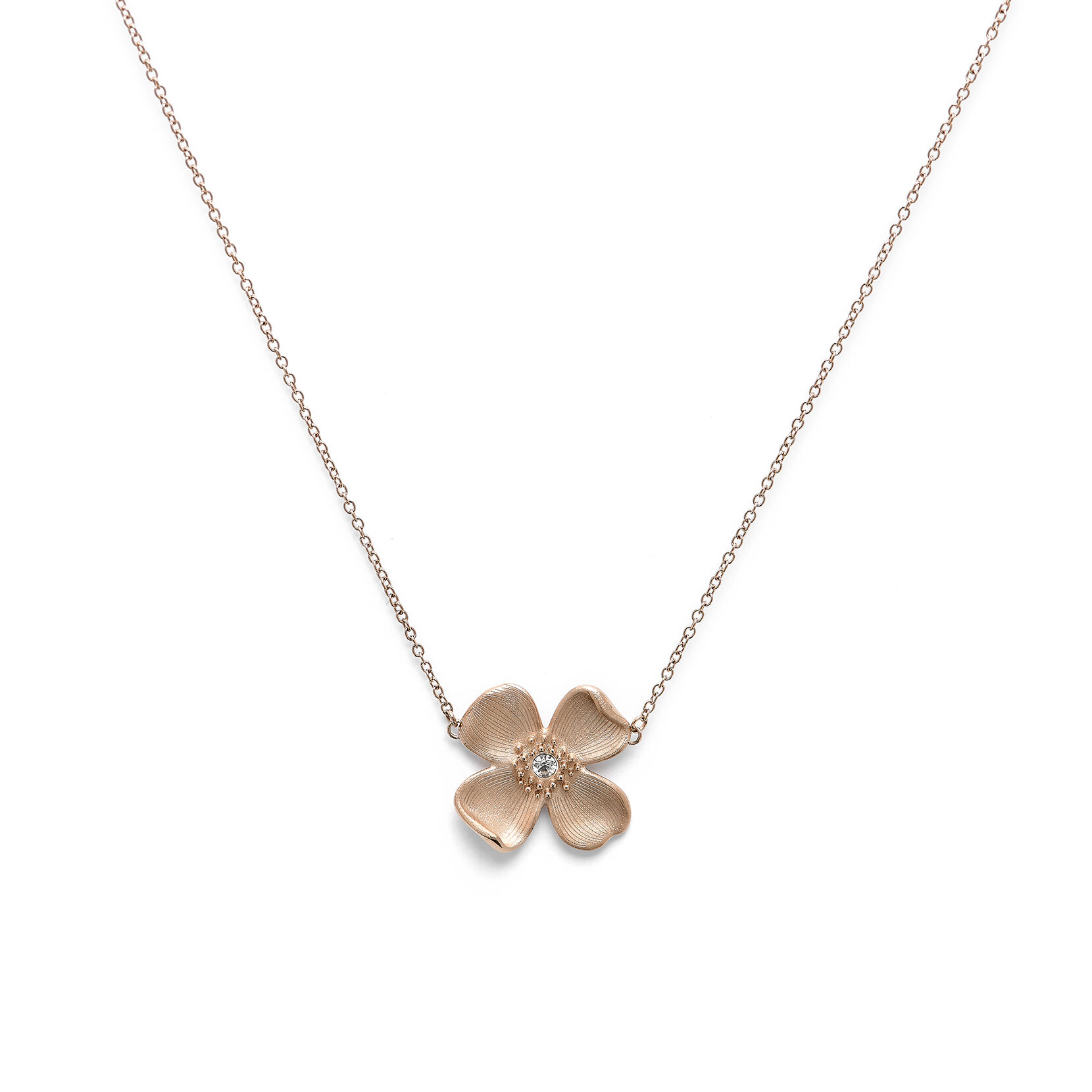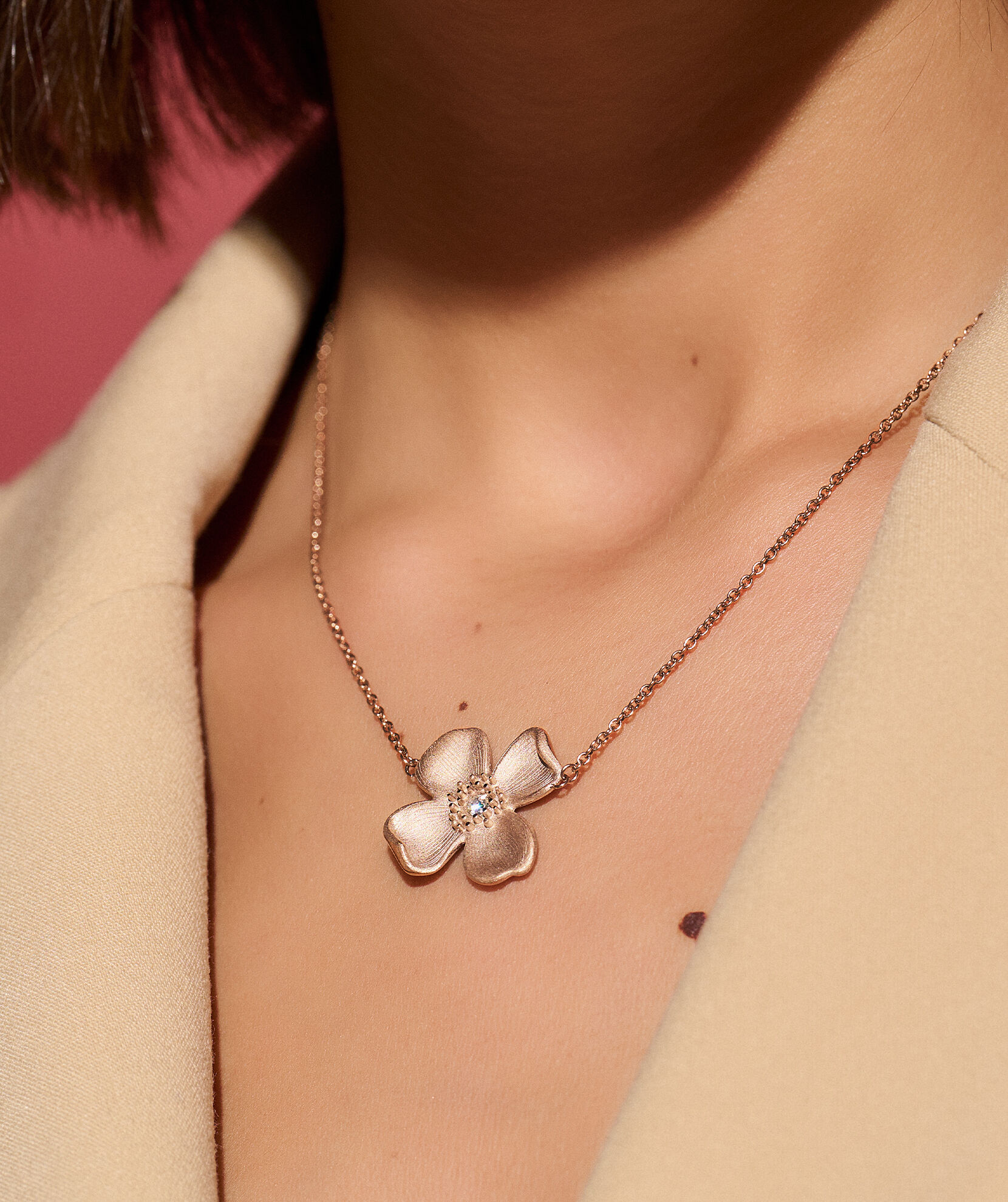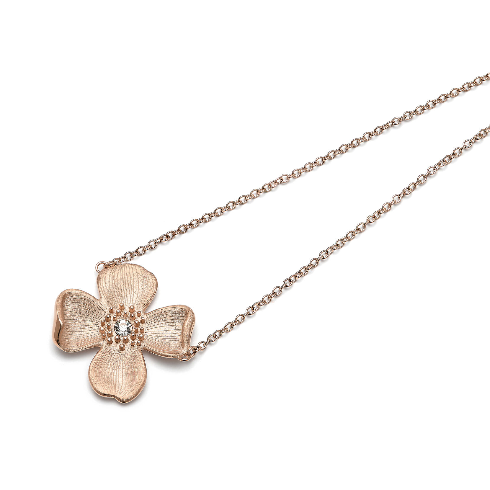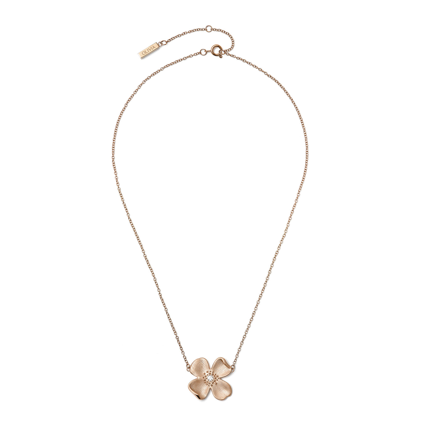 Inspired by one of the most distinctive flowers in the English countryside, our carnation gold-plated Dogwood pendant is a piece you’ll reach for every day. Each delicate petal features detailed etching and a crystal centre pays homage to nature’s finest work. Paired with an elegant carnation gold-plated chain for pretty simplicity. We love it twinned with the Dogwood bracelet.