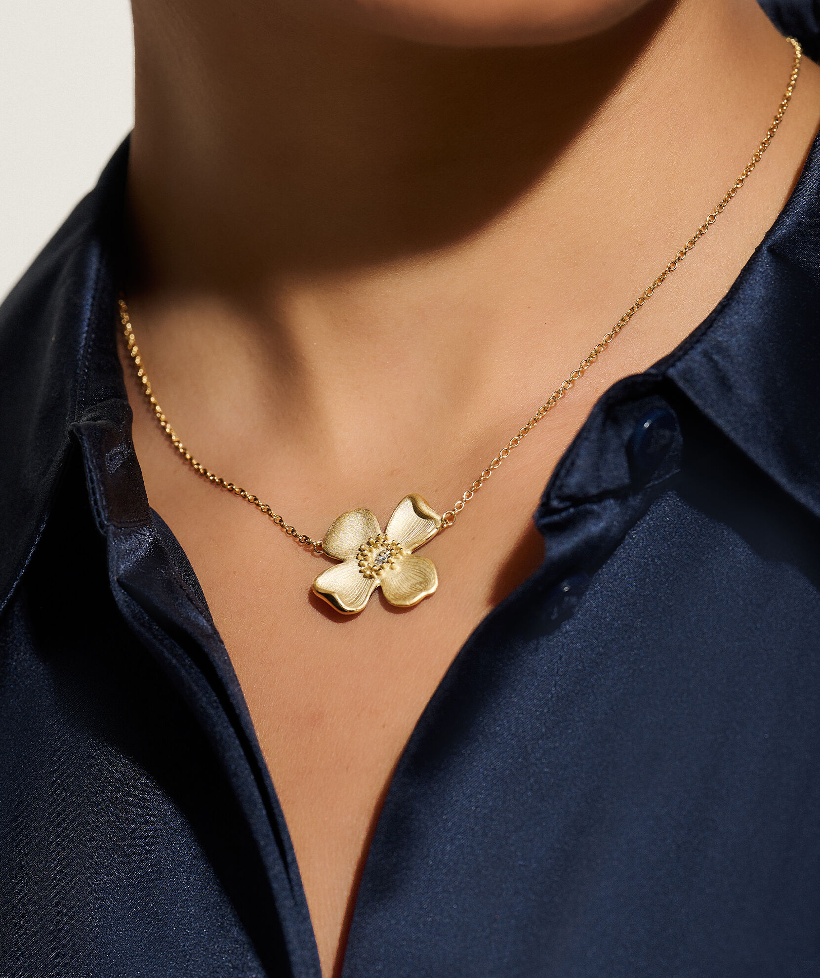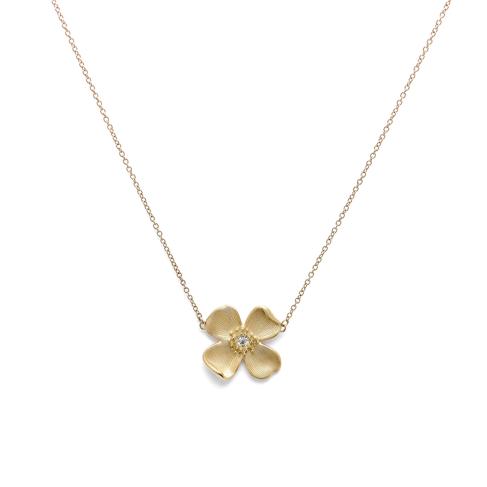Inspired by one of the most distinctive flowers in the English countryside, our gold-plated Dogwood pendant is a piece you’ll reach for every day. Each delicate petal features detailed etching and a crystal centre pays homage to nature’s finest work. Paired with an elegant gold-plated chain for pretty simplicity. We love it twinned with the Dogwood bracelet.