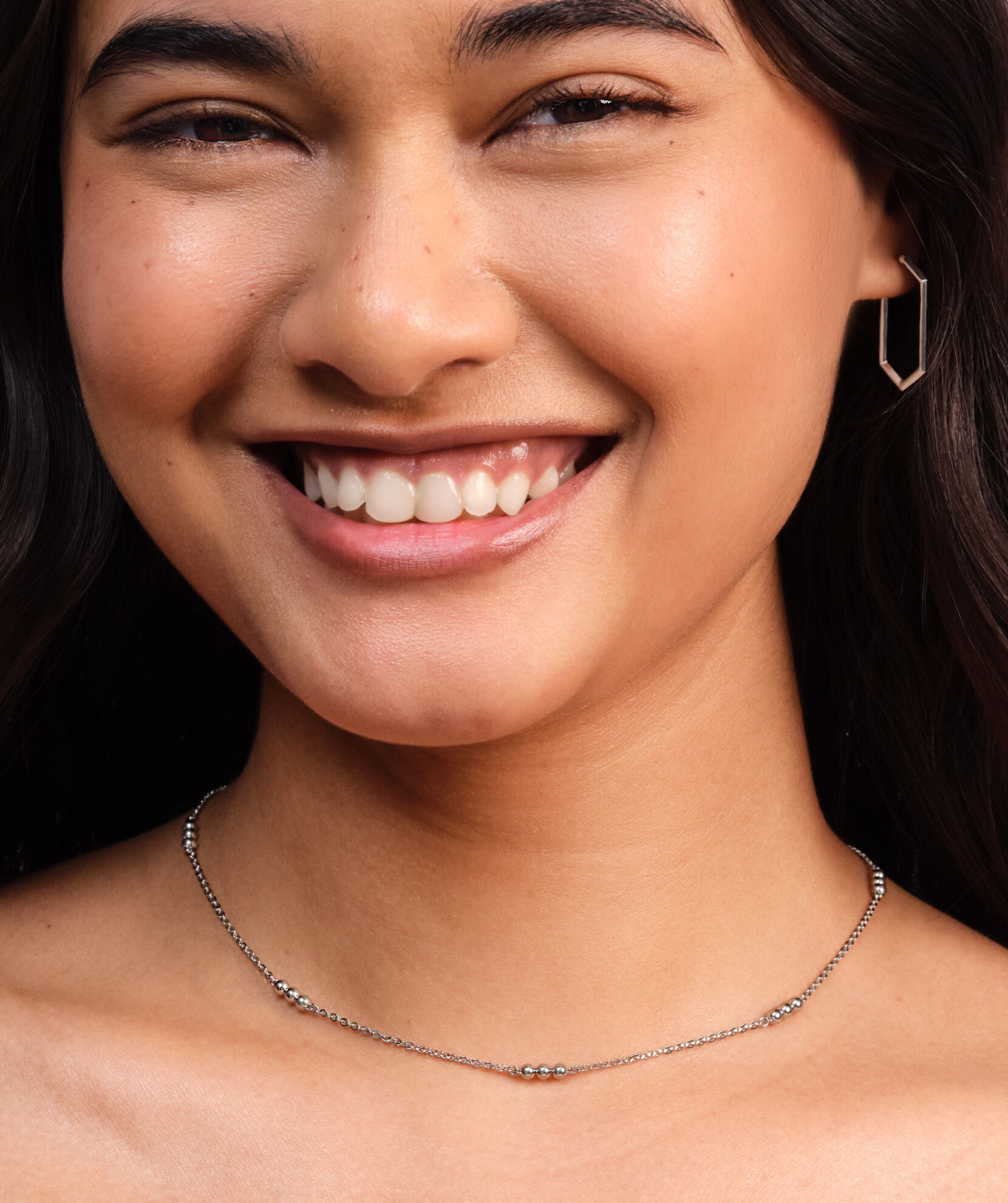 Our Ever stacked jewelry collection continues to grow with designs inspired by some of our best-loved motifs. This delicate silver-tone necklace features vintage-inspired beads in a nod to our favourite vintage styles. Designed to be worn with other necklaces from the Ever Stacked collection, each piece has a generous extender to create the perfect stack. Why not try pairing gold and silver for a