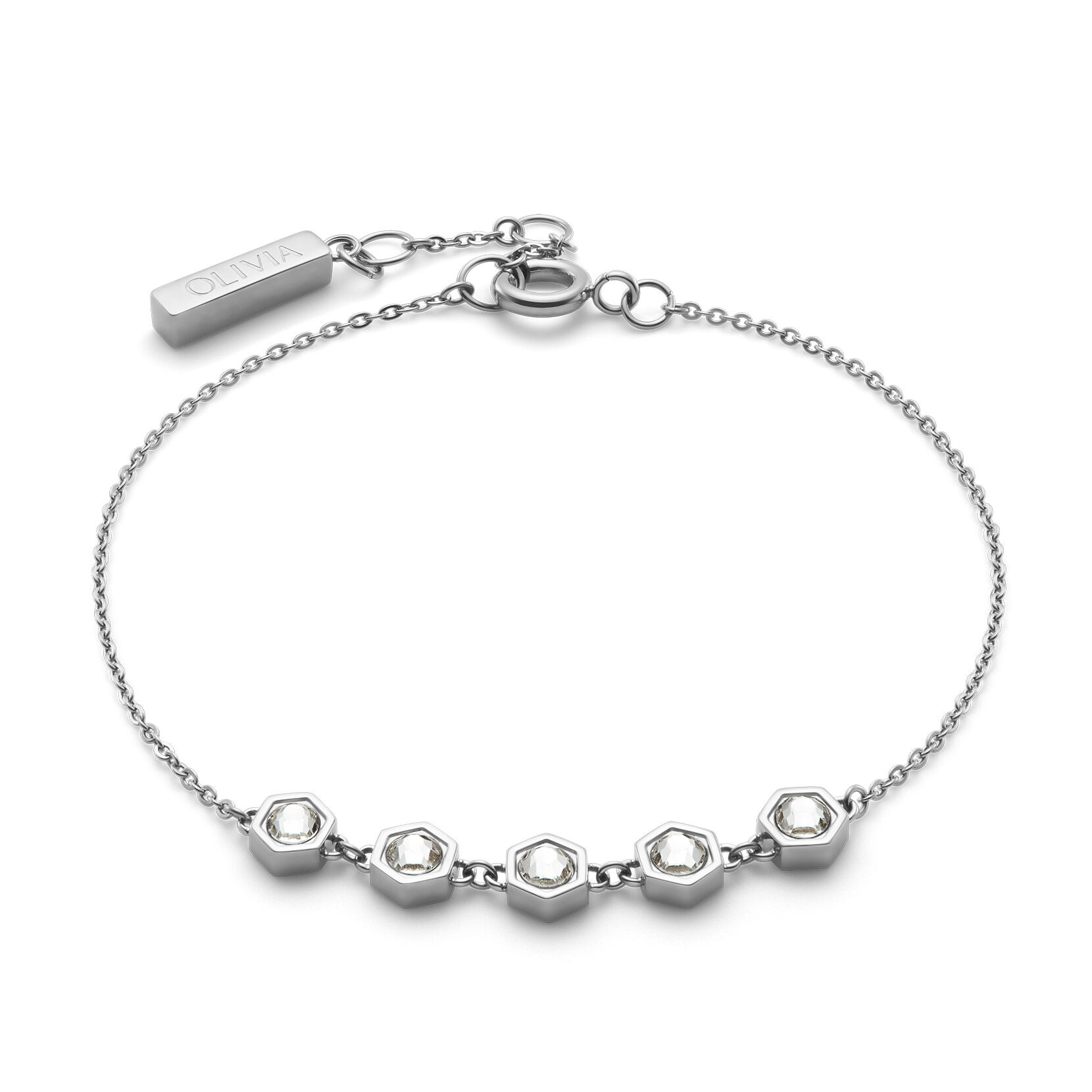 Our Ever stacked jewelry collection continues to grow with designs inspired by some of our best-loved motifs. This delicate silver-tone bracelet features a series of hexagonal crystal-set charms inspired by the honeycomb and is perfect in a stack.