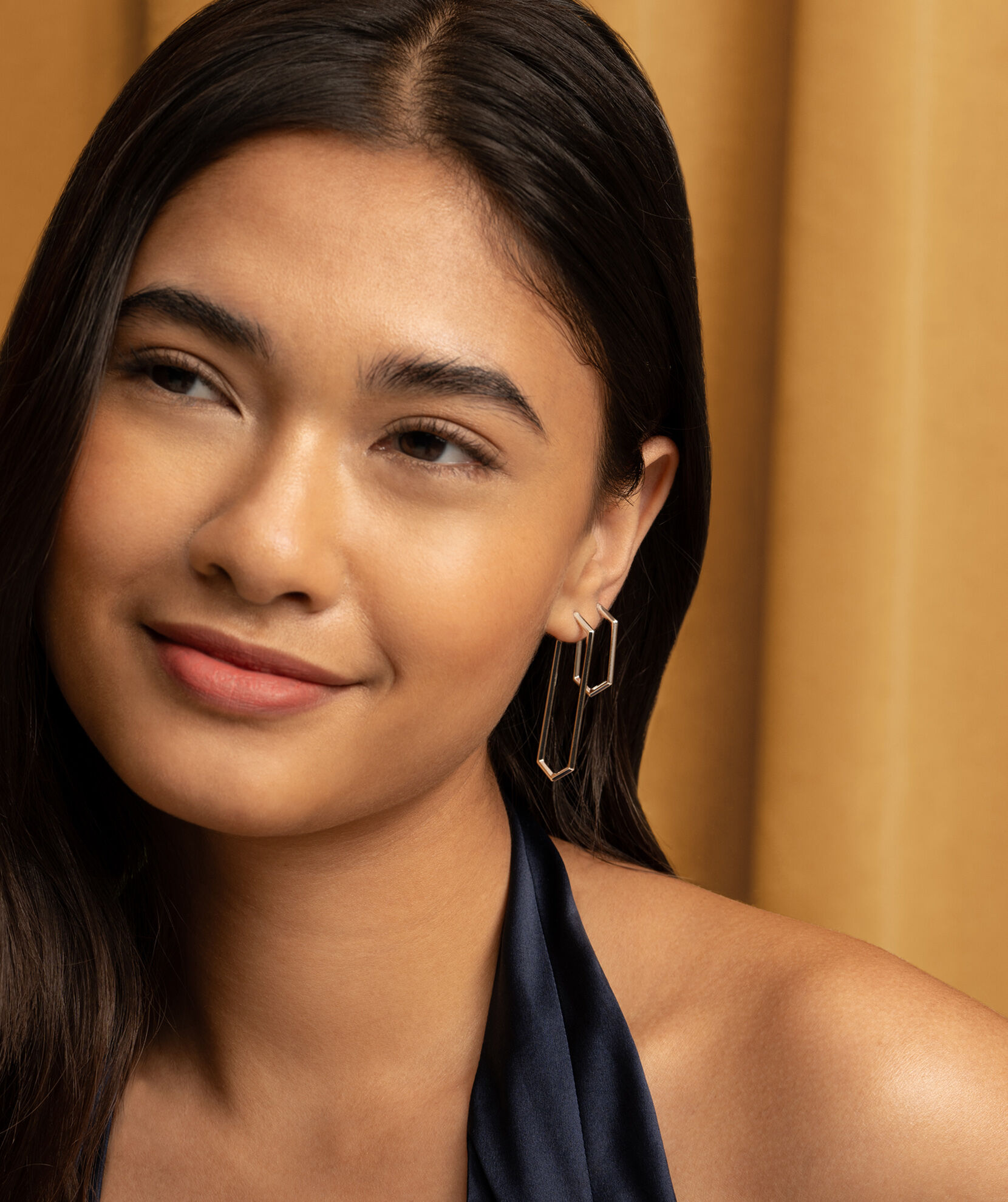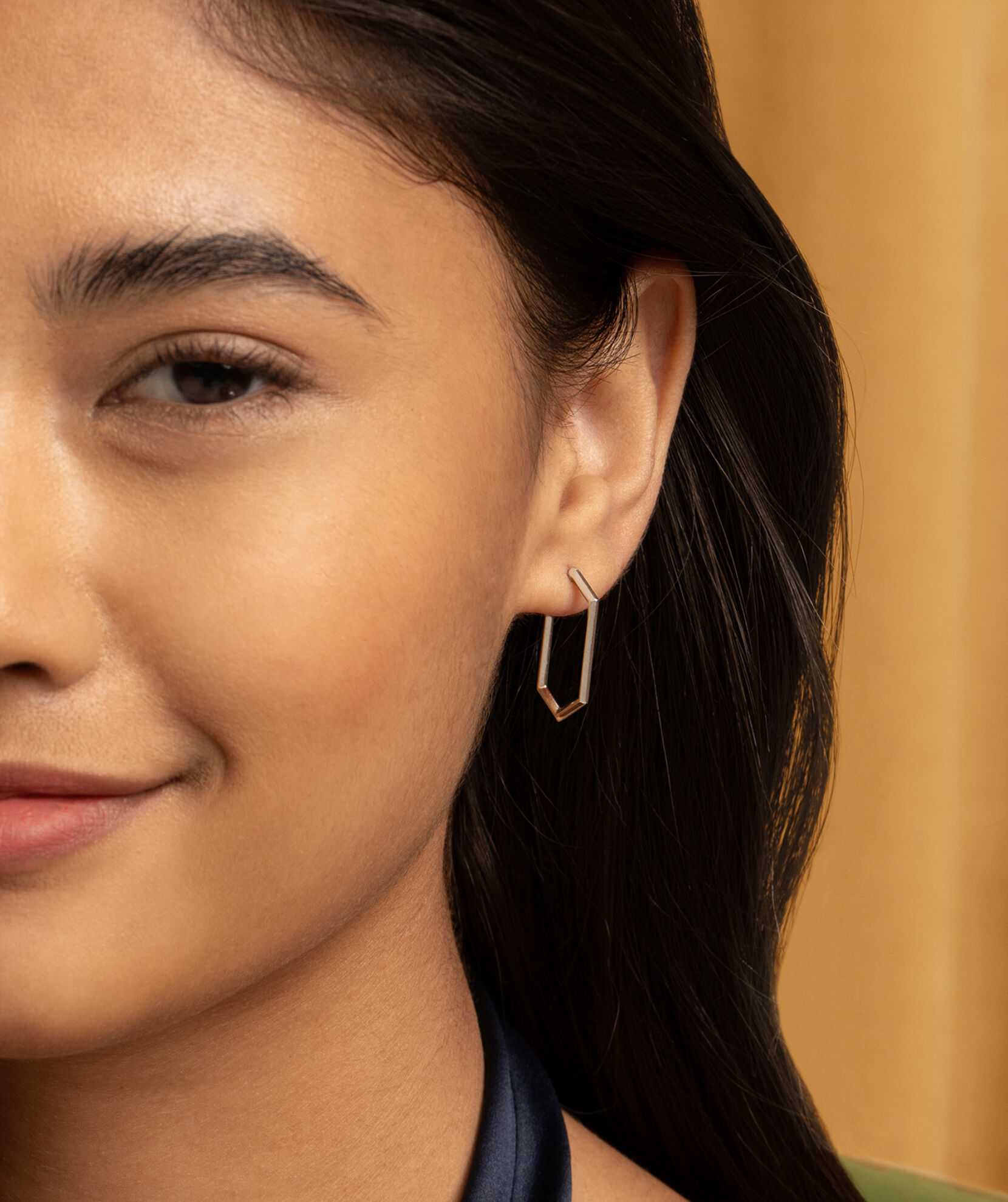 Upgrade your everyday essentials with these geometric hoop earrings. These small silver-tone hoops with elongated hexagonal silhouette are the perfect twist on a classic style. Love to layer? Check out the rest of our Everstacked Earring Collection for styles designed to be worn together.