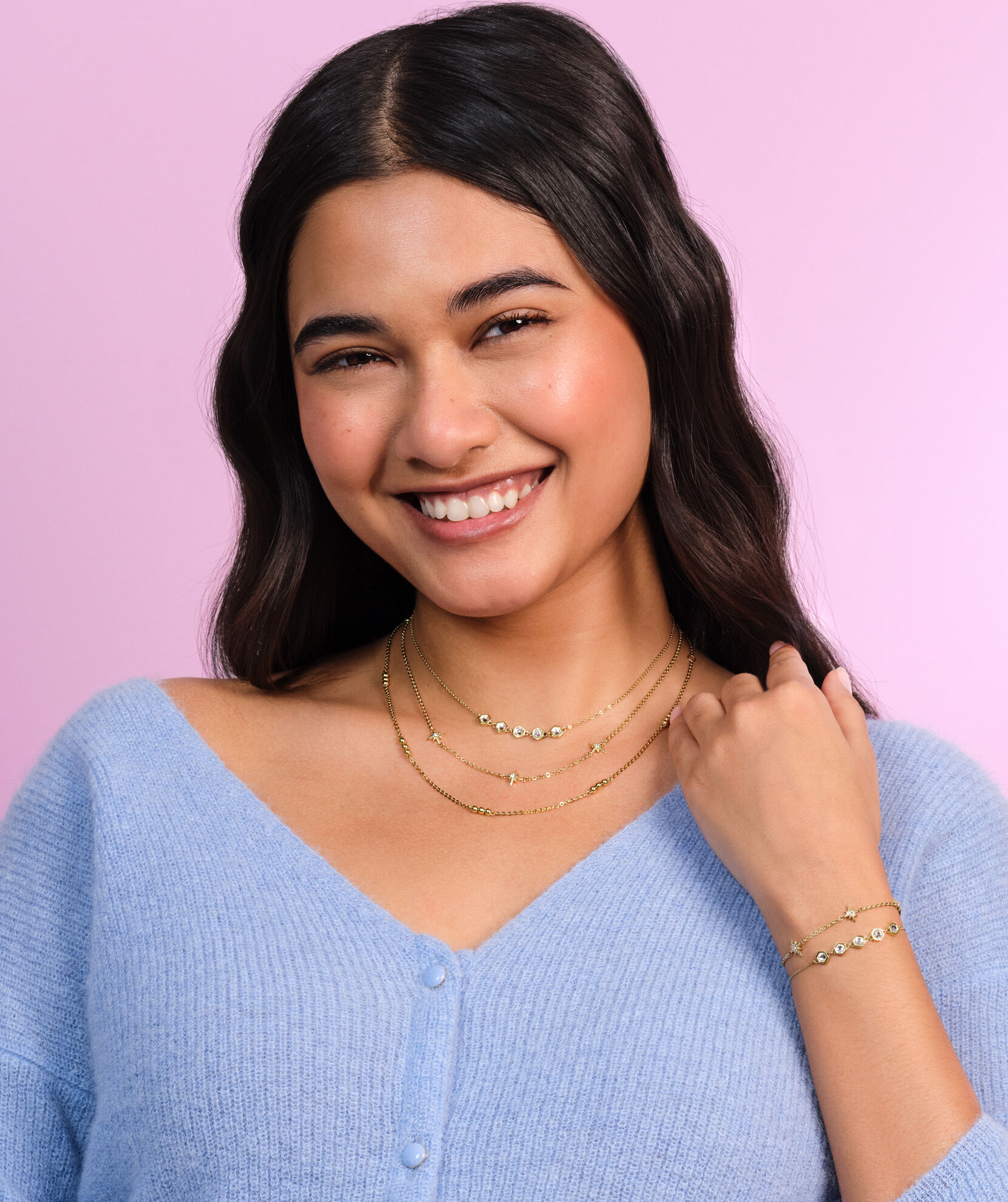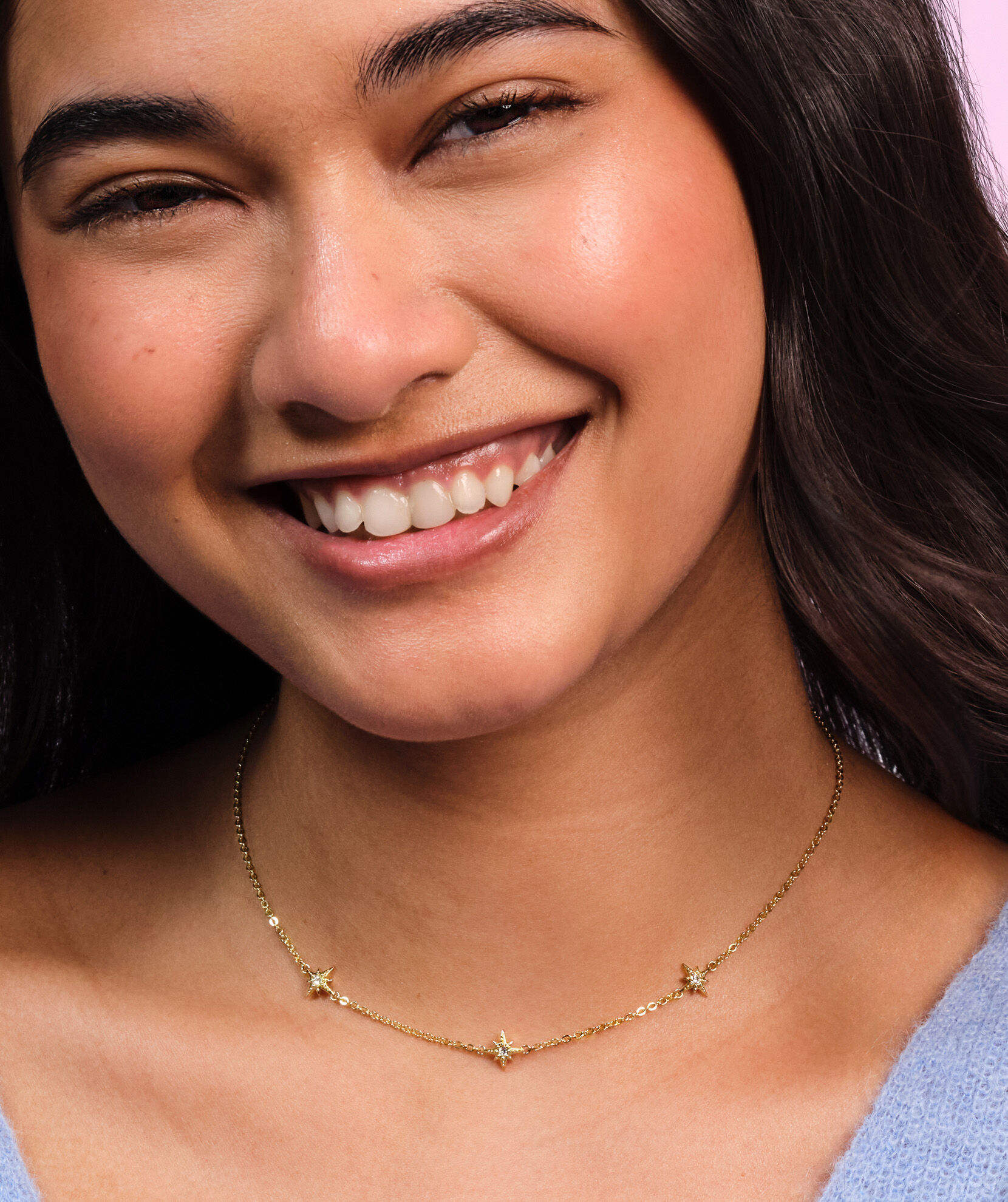Our Ever stacked jewelry collection continues to grow with designs inspired by some of our best-loved motifs. This delicate gold-plated necklace features a series of crystal-set North Star charms. Each piece has a generous extender to create the perfect stack. Why not try pairing gold and silver for a mixed-metal look?