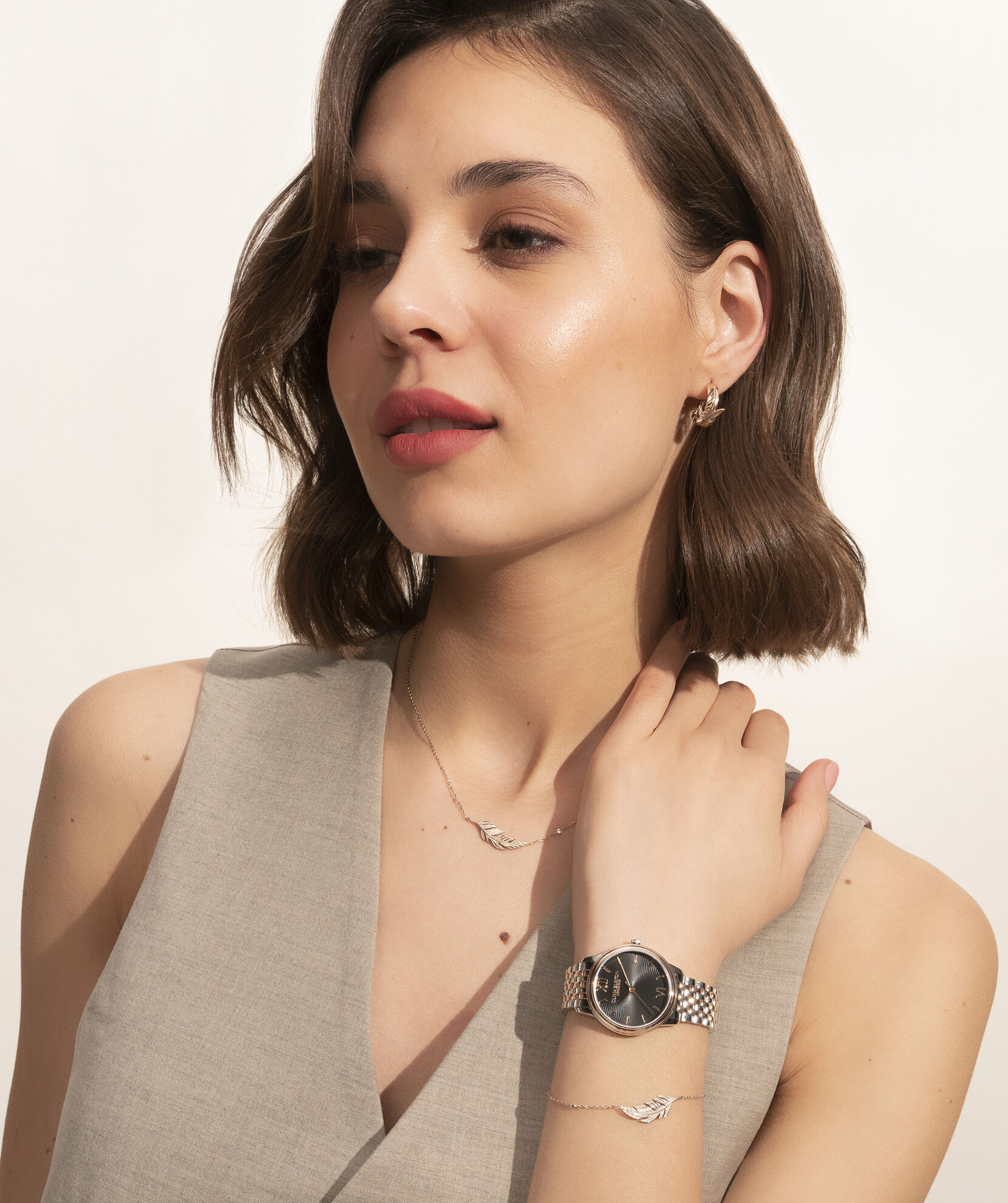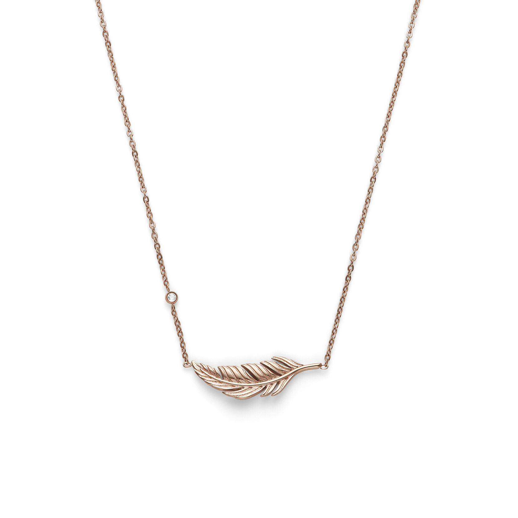 Symbolising freedom, wisdom and power, our Feather jewelry is graceful, feminine and full of movement. This delicate rose gold plated feather pendant is brought to life with detailed engraving whilst the necklace chain is finished with a tiny crystal for an unexpected surprise. The perfect meaningful token for you or a loved one.