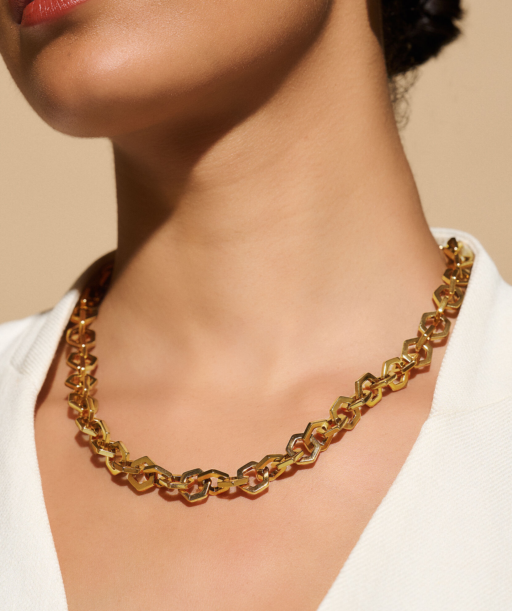 A sophisticated celebration of Olivia Burton’s iconic bee, the Signature jewelry collection is celebrating honeycomb in all its glory. Elegant, bold and contemporary, the Honeycomb Link Necklace plays on the geometry of the beehive with gold-plated hexagonal links. Complete the set with the Honeycomb Link Bracelet for a look that’s Olivia Burton through and through.
