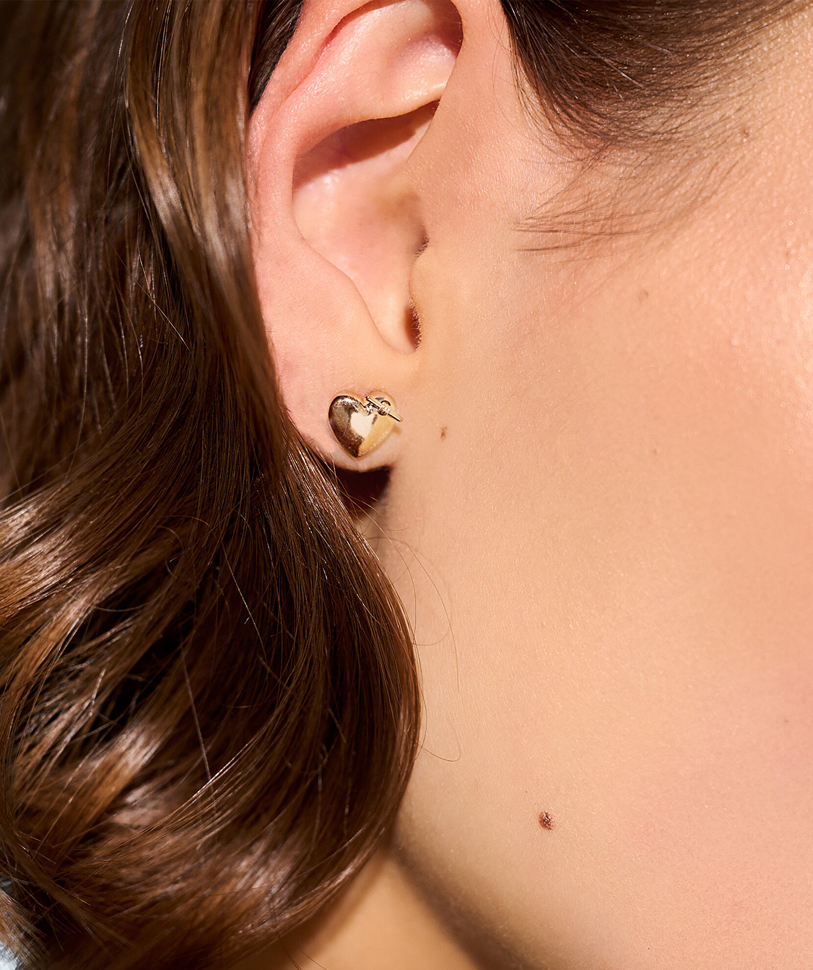 Wear your heart on your sleeve (and ears). These Classic Knot Heart Studs serve as a playful amulet of affection – made to remind those who mean the most to us that we care. Each heart stud is crafted from stainless steel and plated in gold, then finished with a knot and the OB signature for a unique twist.