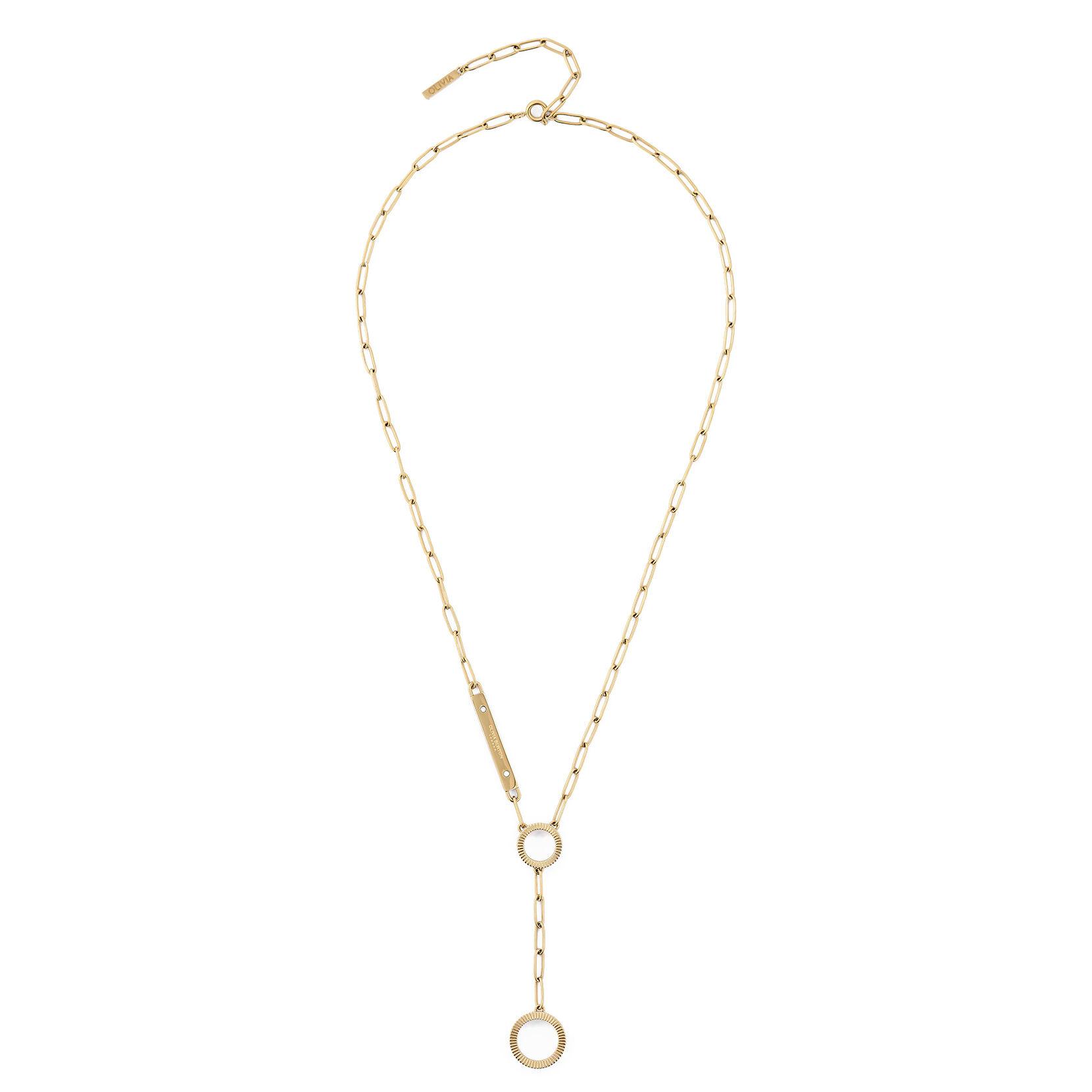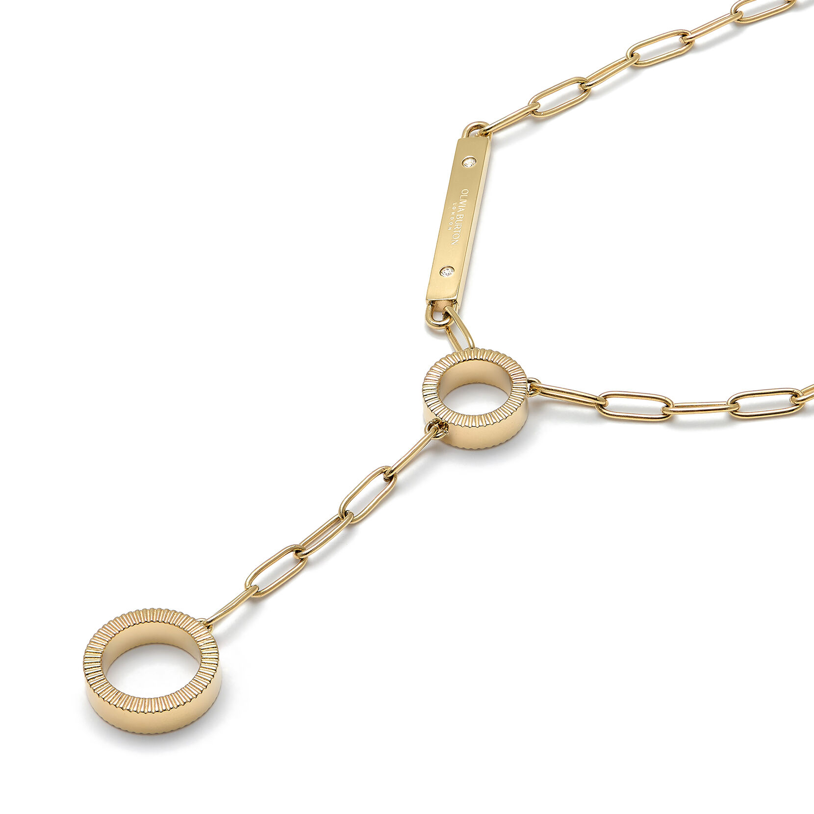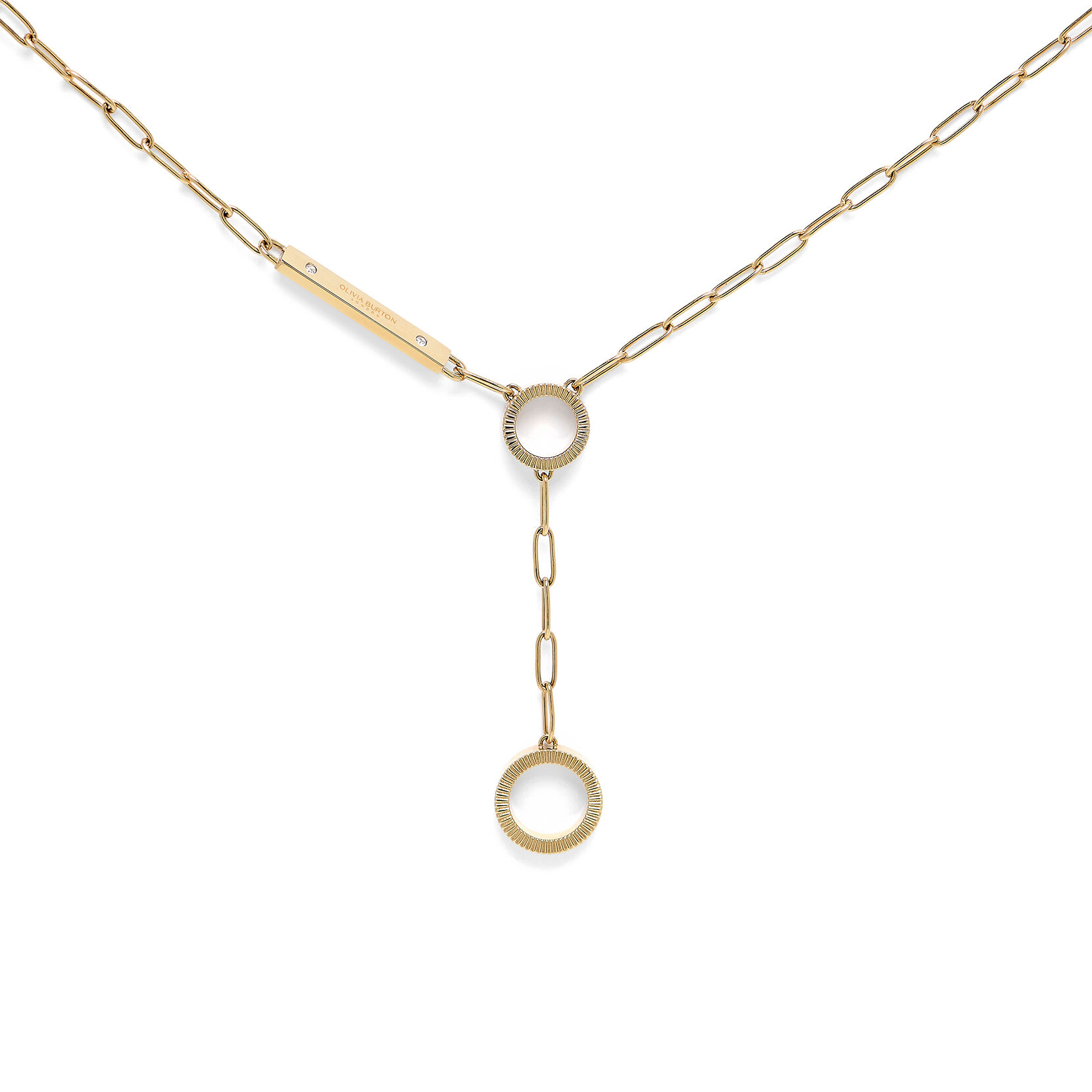 One of our most elegant designs to date, this delicate gold-plated piece comprises a chain link held together by two rings, and a plate embossed with our Olivia Burton branding. Wear alone for a simple statement or mix with styles from our Classics Linear range for an enviably stacked finish.