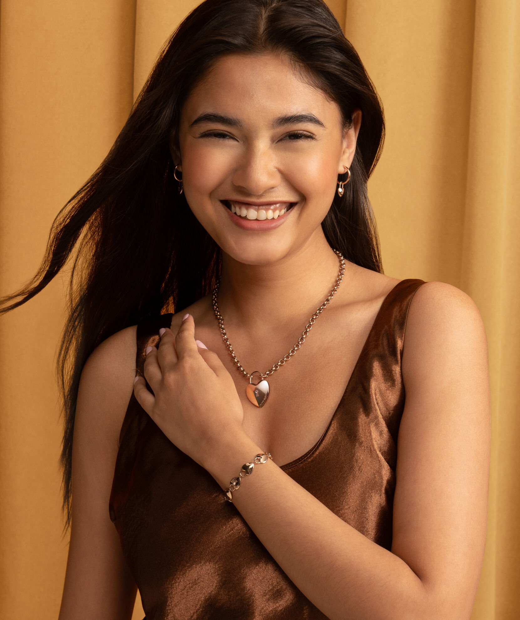 Fall head over heels for this fun collection of modern love tokens. These rose gold-plated charm earrings are inspired by antique Victorian jewelry. We’ve added playful details including an engraved crystal keyhole and chunky hoop. Prefer to wear your heart on your sleeve? Try the Locked Heart Bracelet.