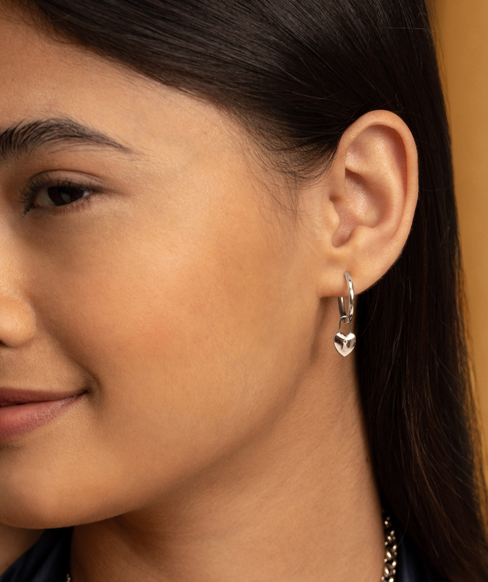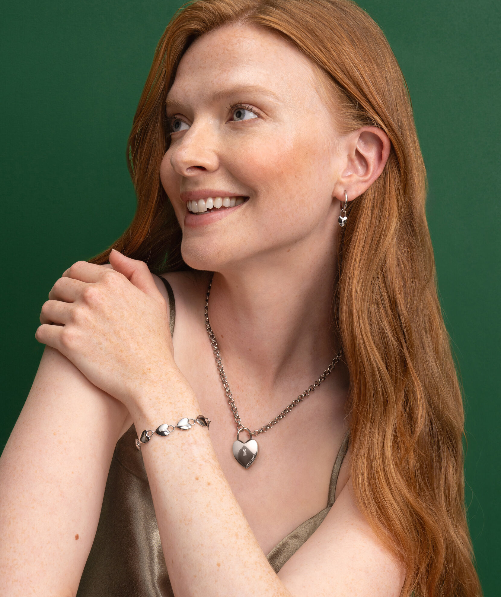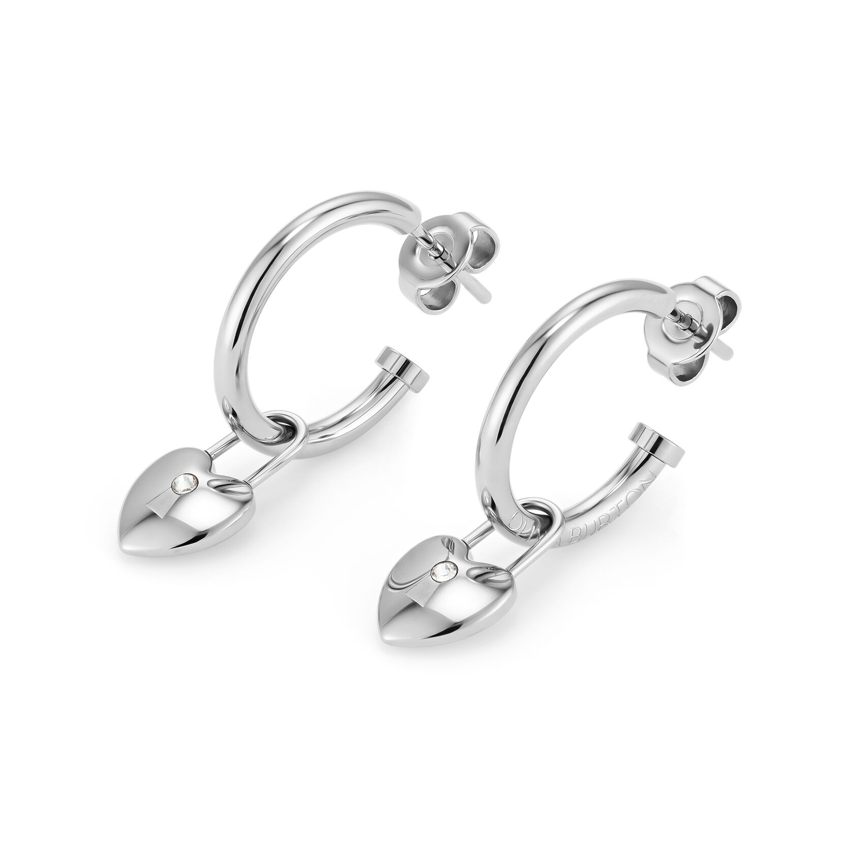 Olivia Burton Jewelry Locked Heart Silver Tone Hoop Earrings