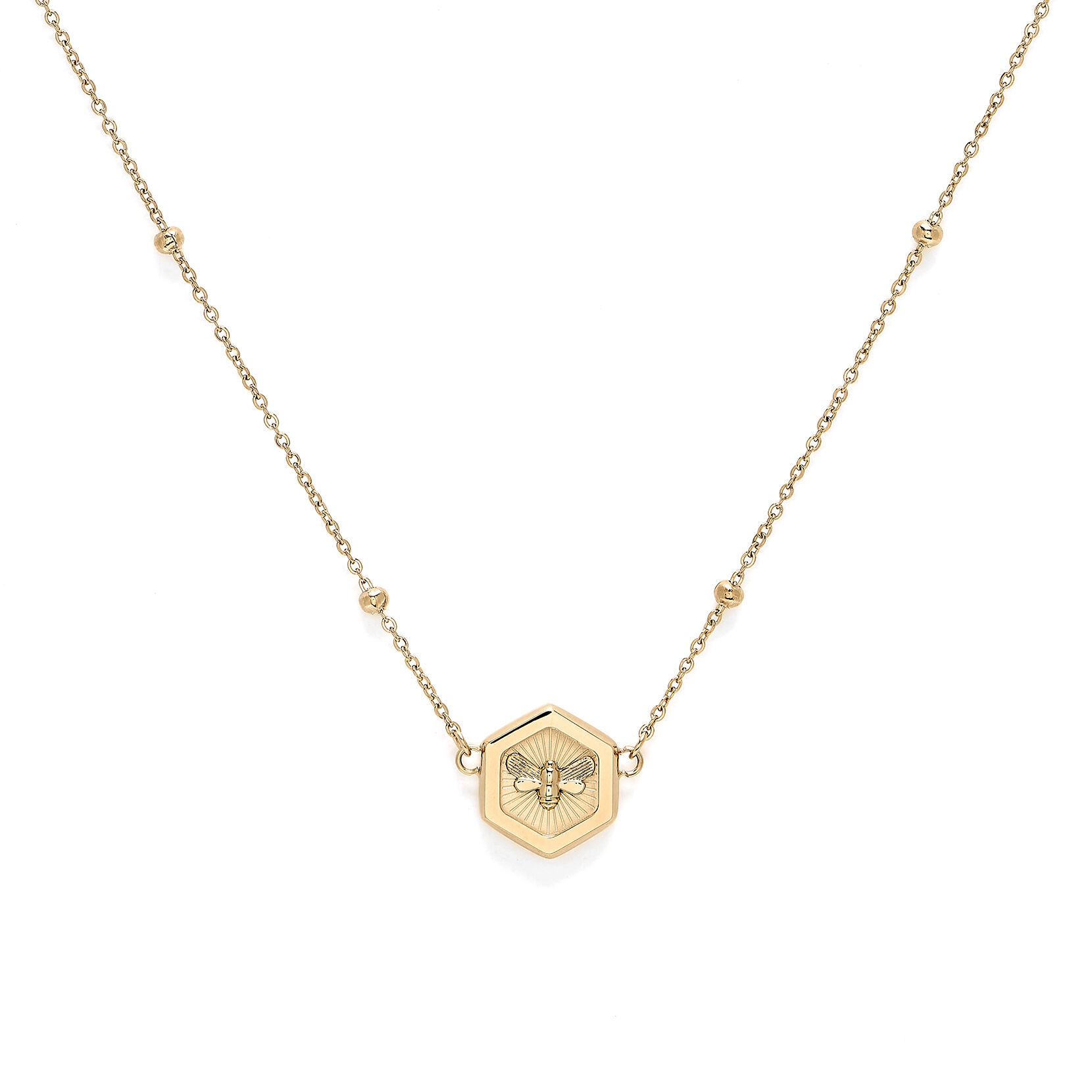 Striking and modern, the Minima Bee and Honeycomb Pendant Necklace is the latest way to wear everyone’s favorite bee. Inspired by the beehive, the geometric gold-plated pendant features a tiny bee. Finished with an on-trend bead detail chain, this is one you won’t want to take off. Can’t get enough? Pair with the Minima Bee and Honeycomb Bracelet.