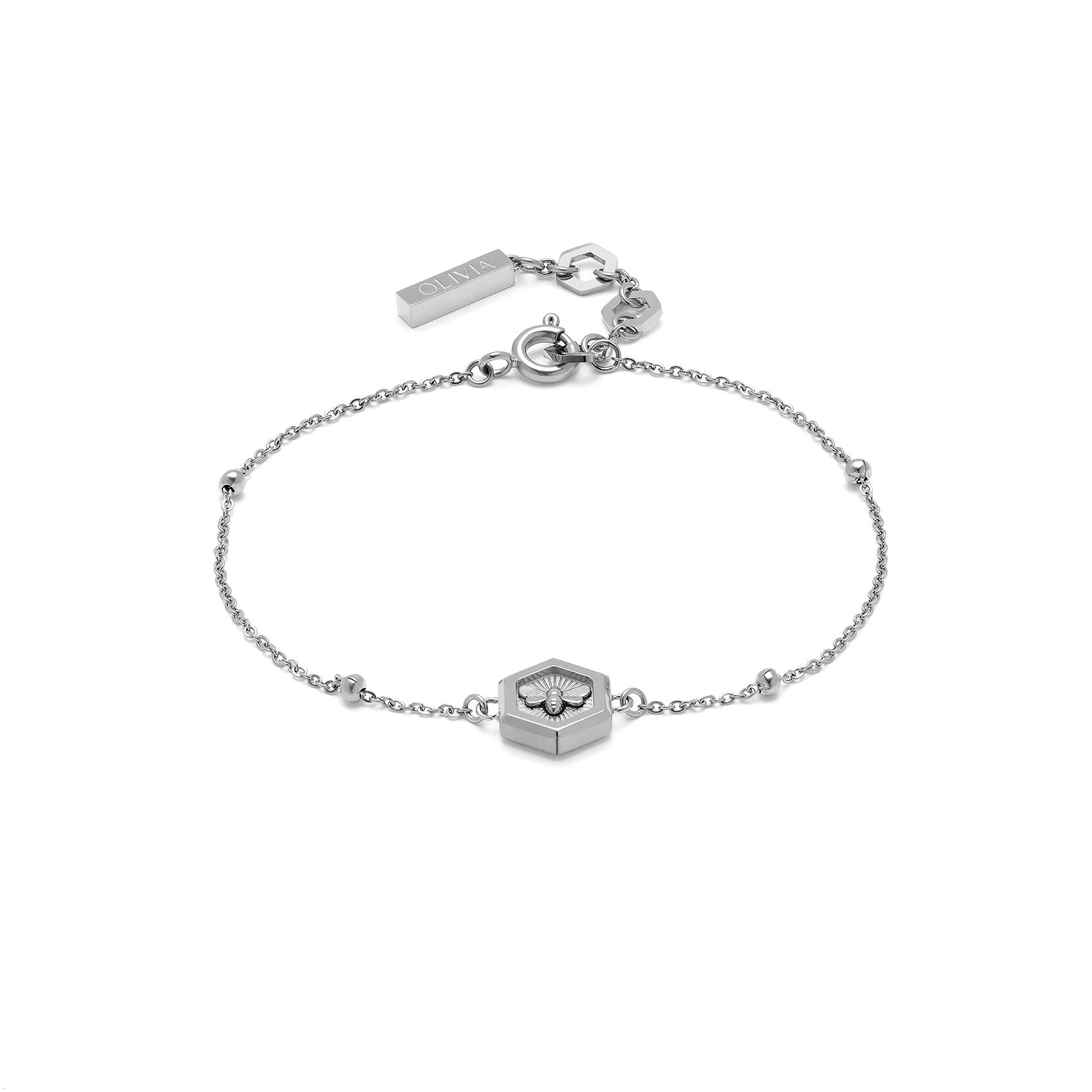 Striking and modern, the Minima Bee and Honeycomb Bracelet is the latest way to wear everyone’s favorite bee. Inspired by the beehive, the geometric stainless steel pendant features a tiny bee. Finished with an on-trend bead detail chain, this is one you won’t want to take off.Can’t get enough? Pair with the Minima Bee and Honeycomb Pendant Necklace.