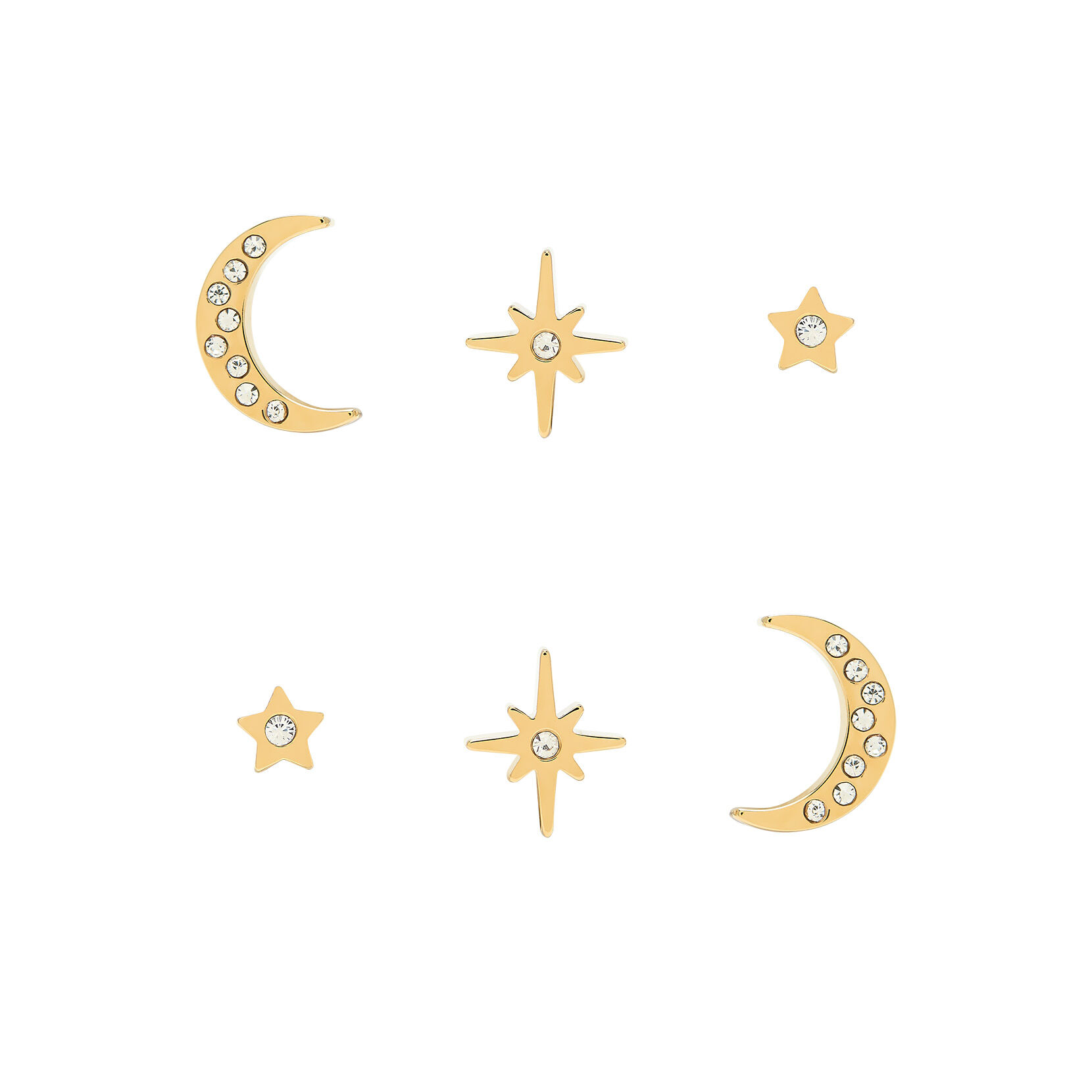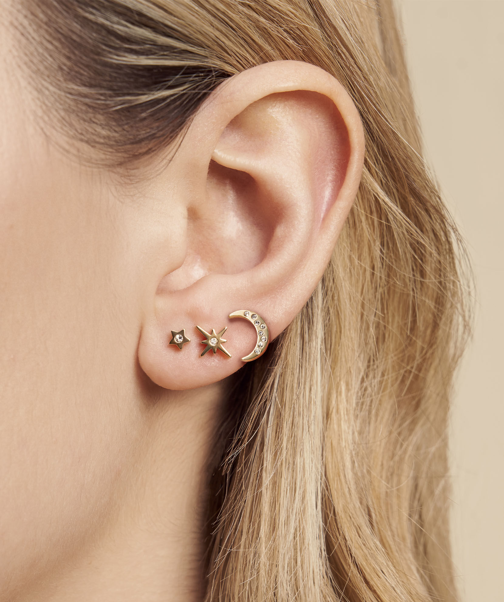 This Celestial North Star & Moon Stud Set is inspired by the mystique of the cosmos. A set of gold-plated crescent moon and star studs embellished with glowing crystals – designed for mixing, matching and stacking. Wear this celestial-inspired set as a reminder of our connection to the world around (and above) us.
