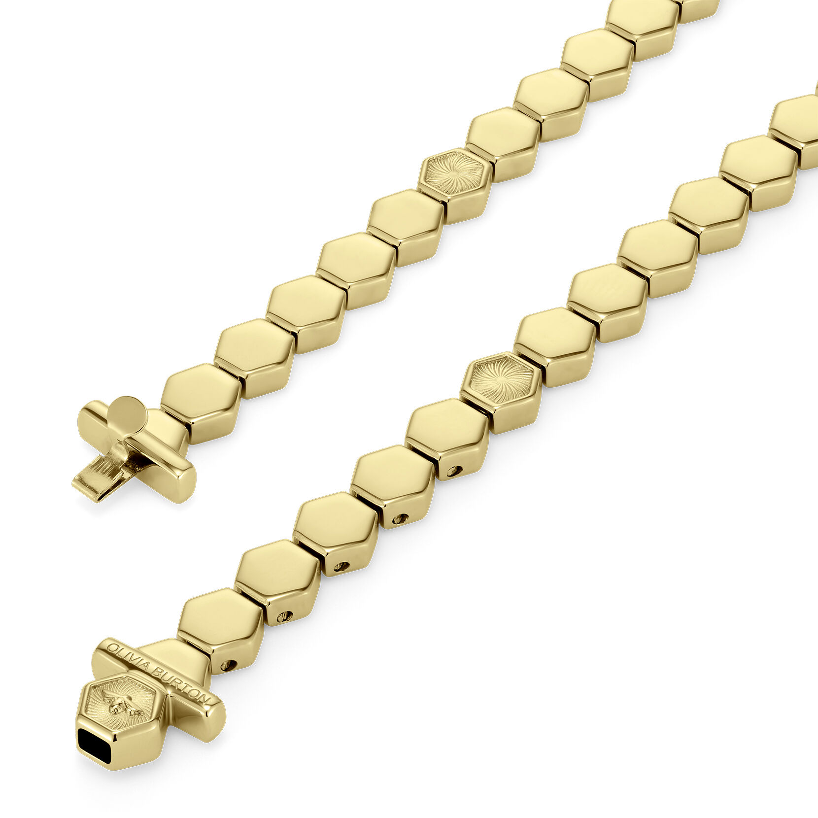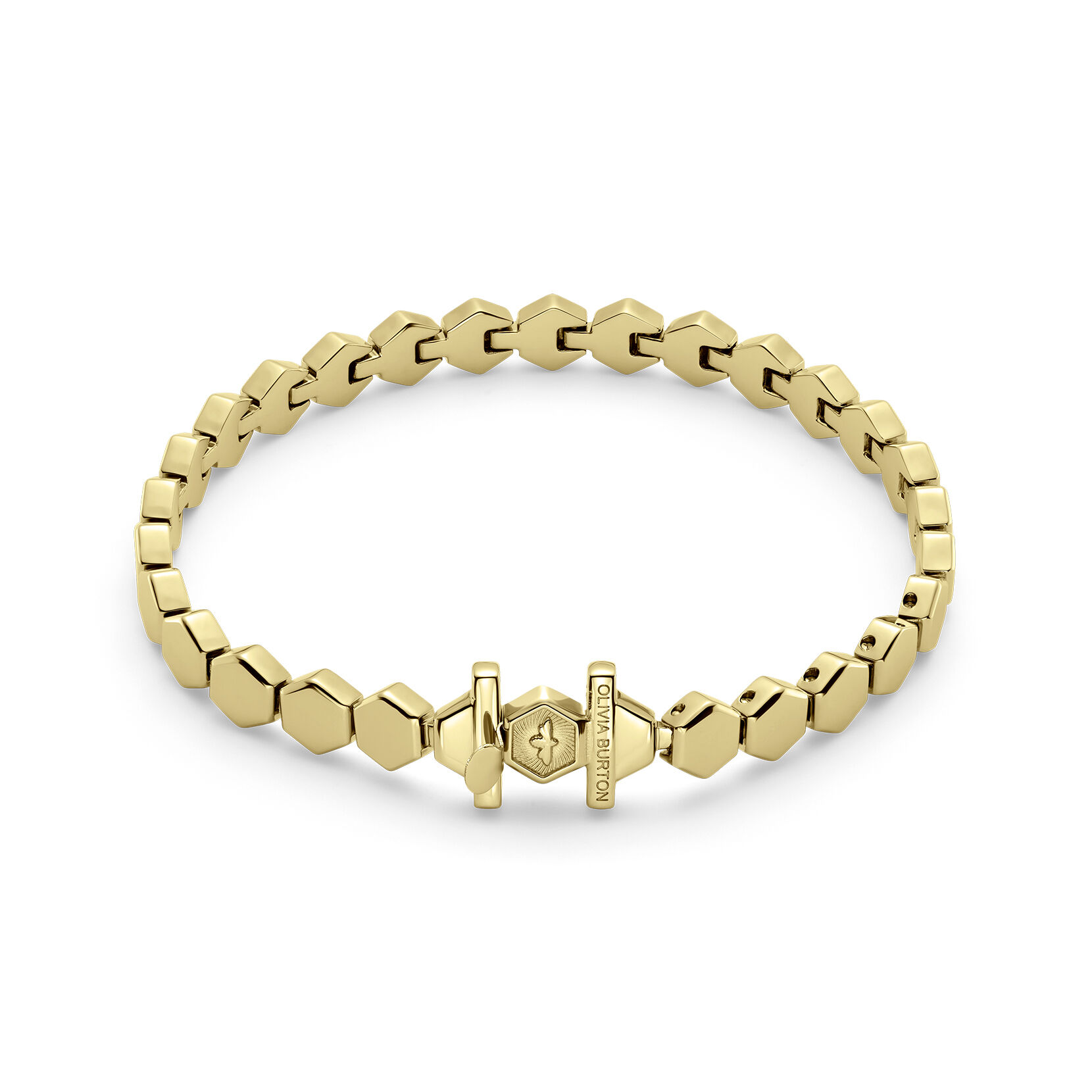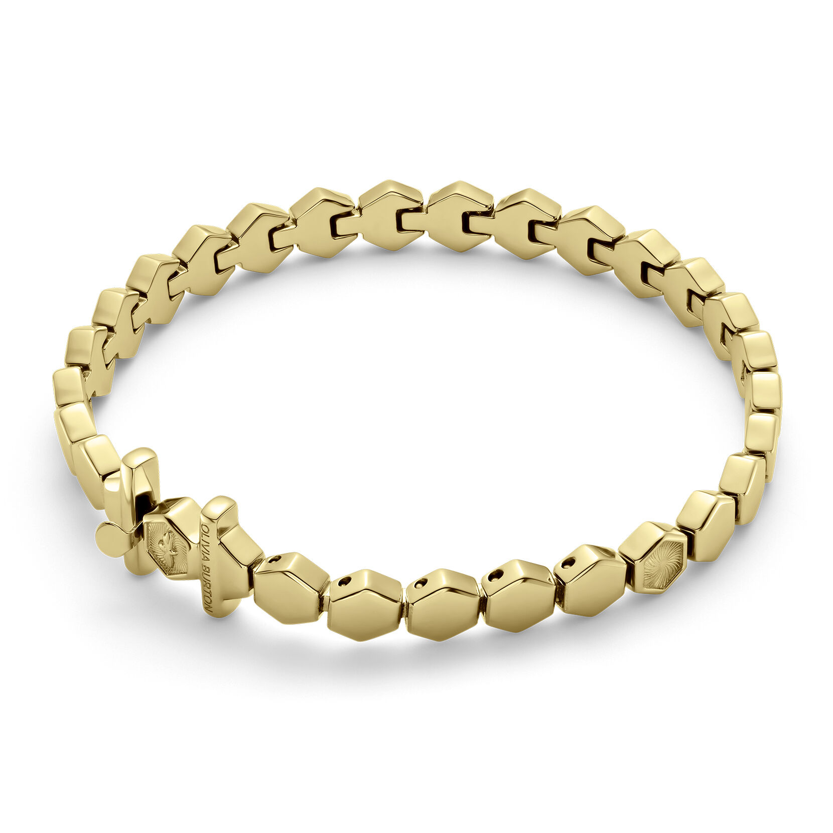 This geometric cuff bracelet is a delicate take on the honeycomb. It features small hexagons with textured swirl finish – a signature pattern you may recognise from our watch dials. This statement gold-plated cuff is the perfect way to add something unexpected to your wrist stack.