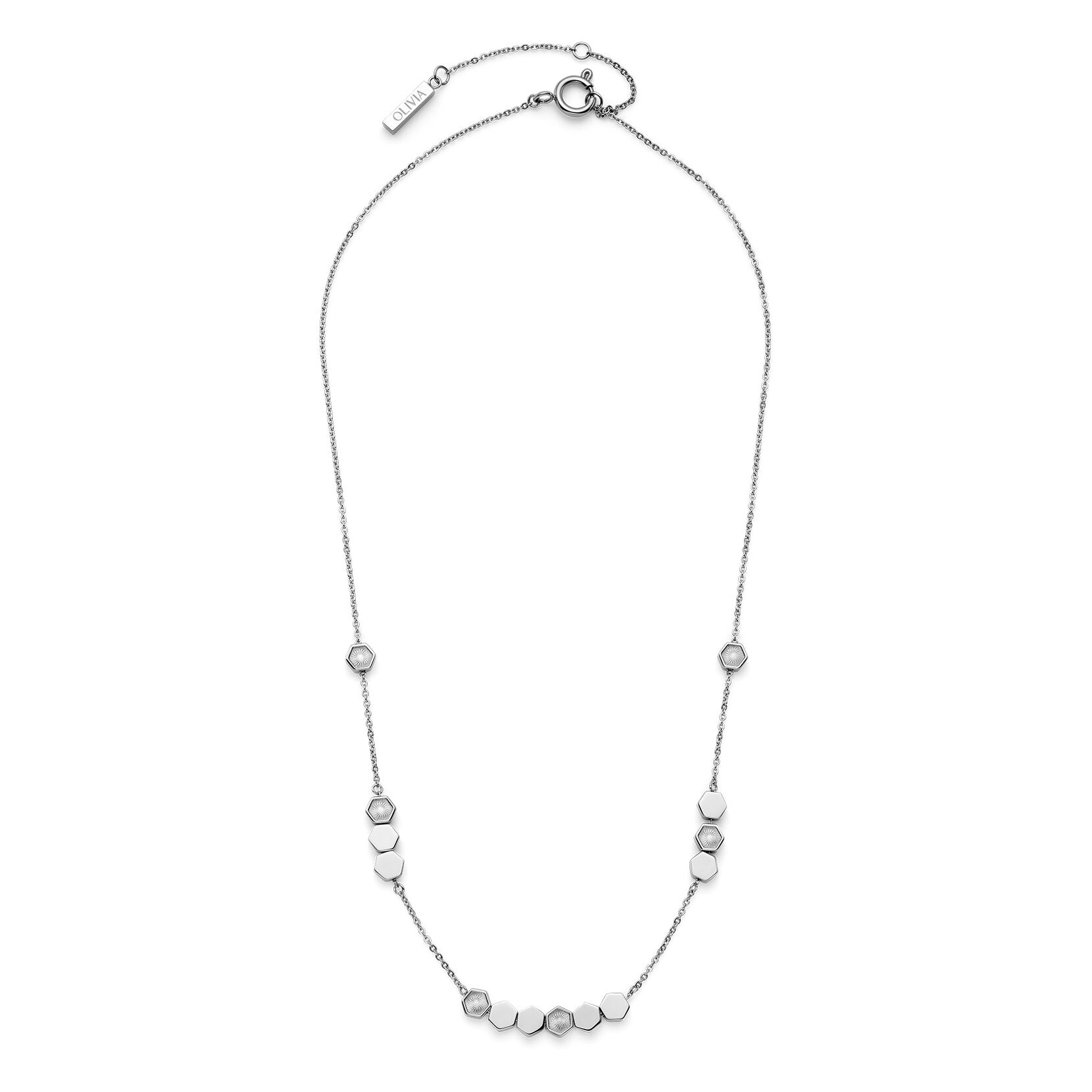 This geometric station necklace is a delicate take on the honeycomb. It features small hexagons with textured swirl finish – a signature pattern you may recognise from our watch dials. With delicate chain and classic silver-tone finish, this piece adds a special Olivia Burton touch to any look. Understated, elegant and sure to be top of your wish list.