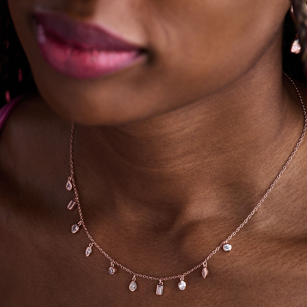 Add some elegance to your layers with our Classic Crystal Charm Necklace. Timeless and delicate, the simple rose gold chain features dropping cubic zirconia crystals in varying shapes. Designed for easy styling, it comes with three adjustable lengths – meaning you can wear it closer to the neck (ideal for those layer-lovers) or opt for a longer, solo style.