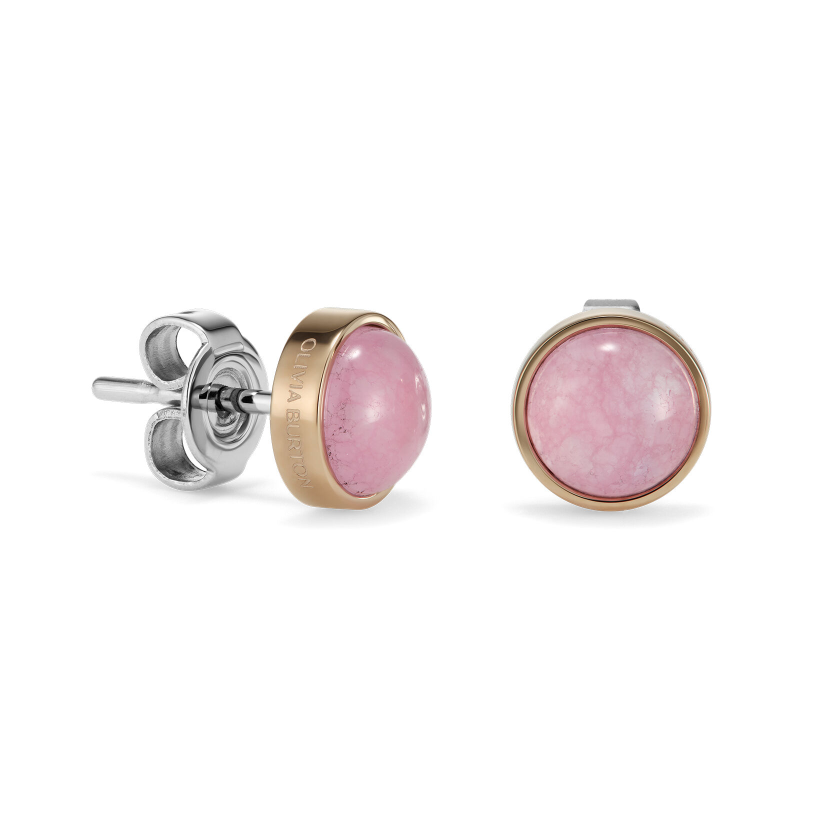 Olivia Burton Jewelry Rose Quartz Cabochon Rose Gold Plated Gemstone Stud Earrings