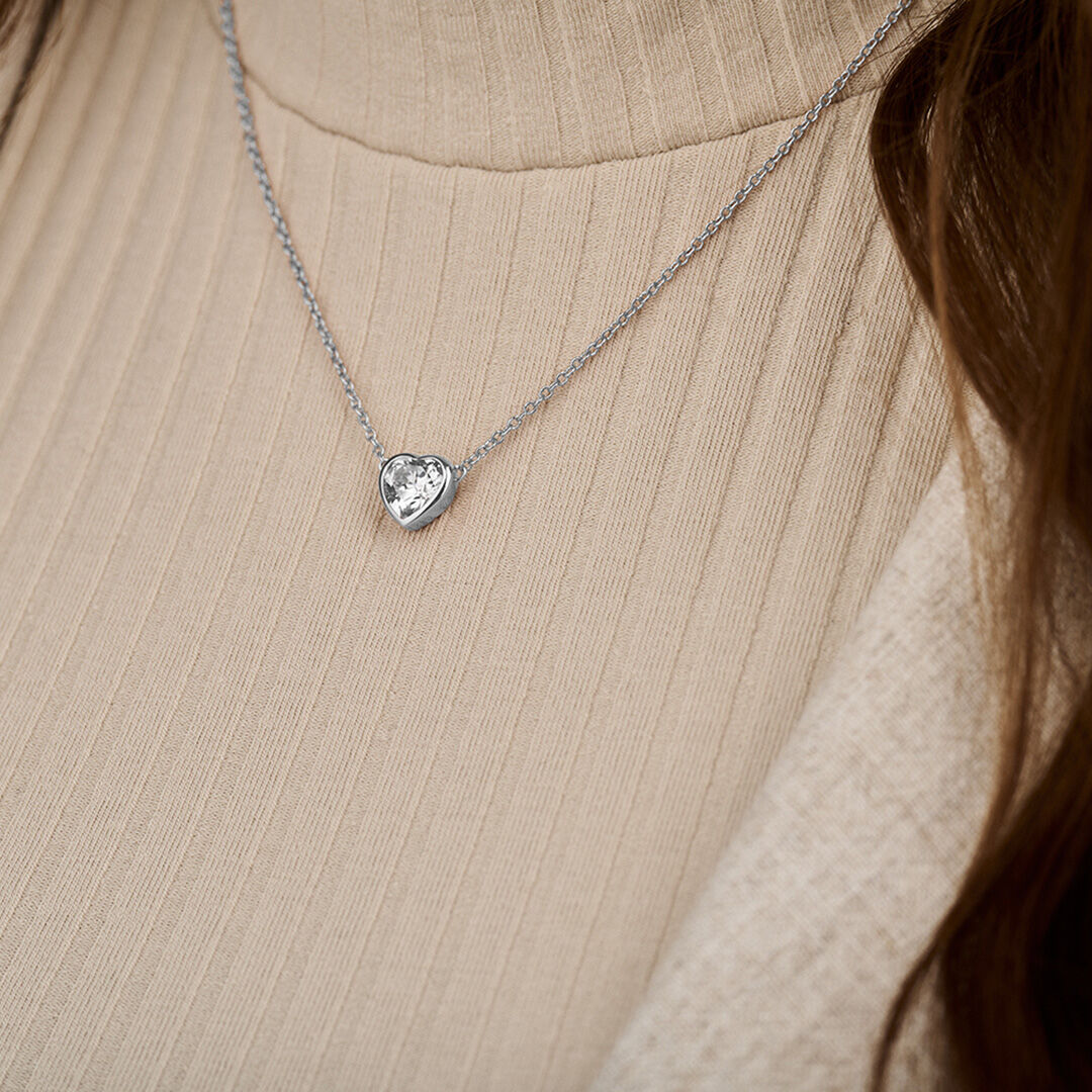The ultimate gift from the heart – our Classic Crystal Heart Necklace will truly match their sparkle. A simple yet elegant heart silhouette is set with a single iridescent crystal and finished in a gleaming silver tone. This sparkling style serves as the ultimate love charm, designed to be kept close every day – whether it’s an unconditional oath to love yourself or someone special, let this necklace show you the way.