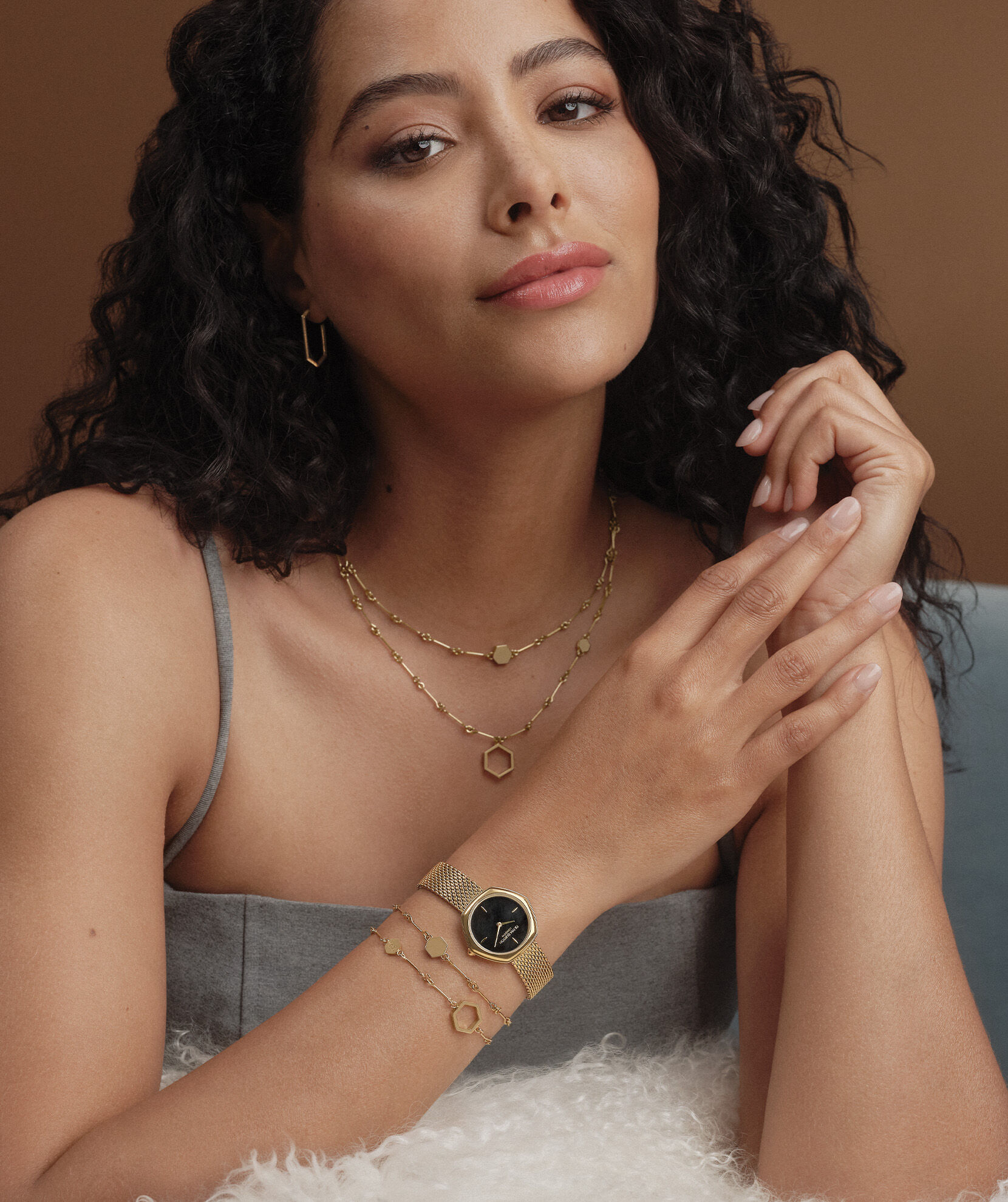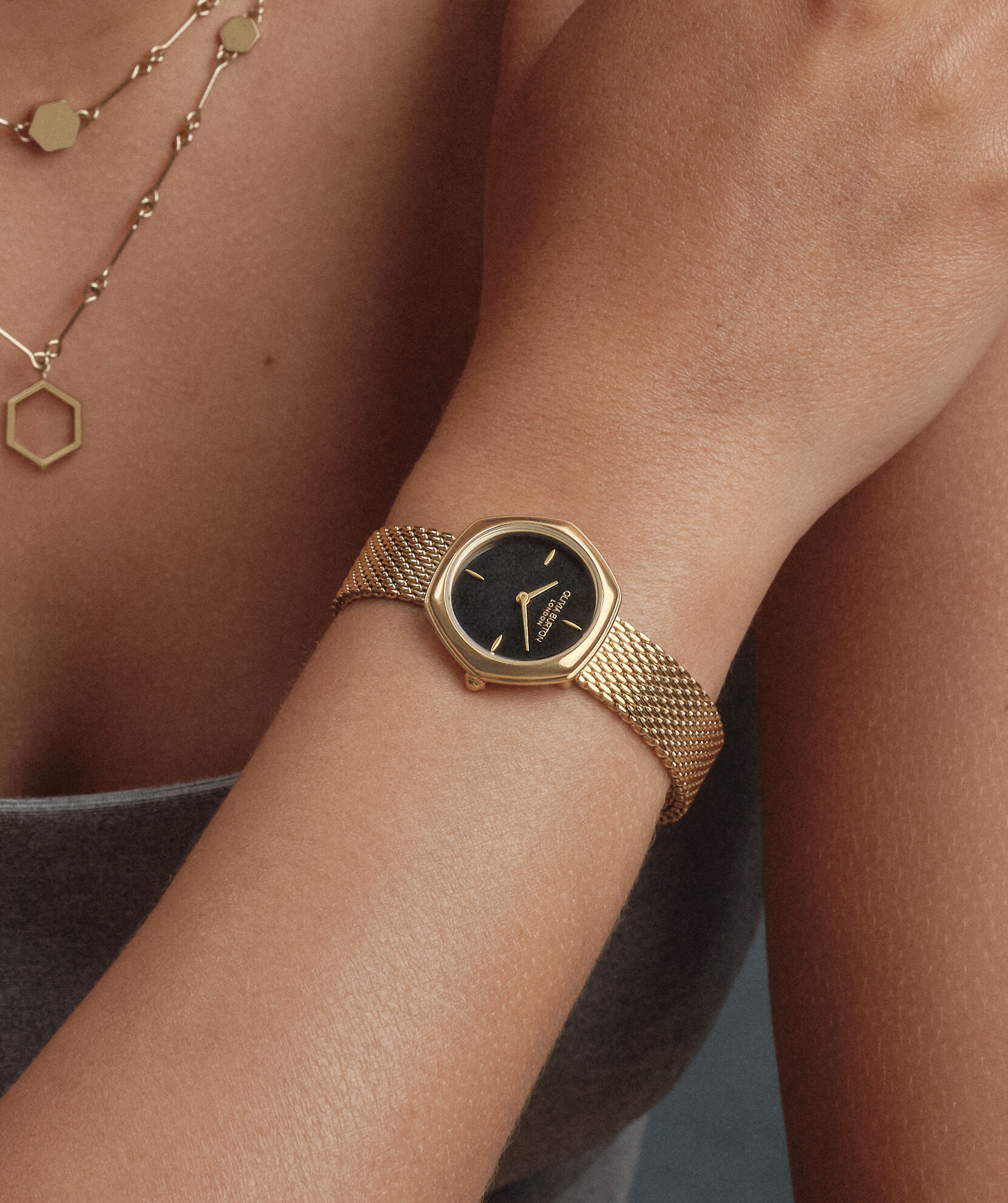 Olivia Burton Watches 28mm Charing Black & Gold Mesh Watch