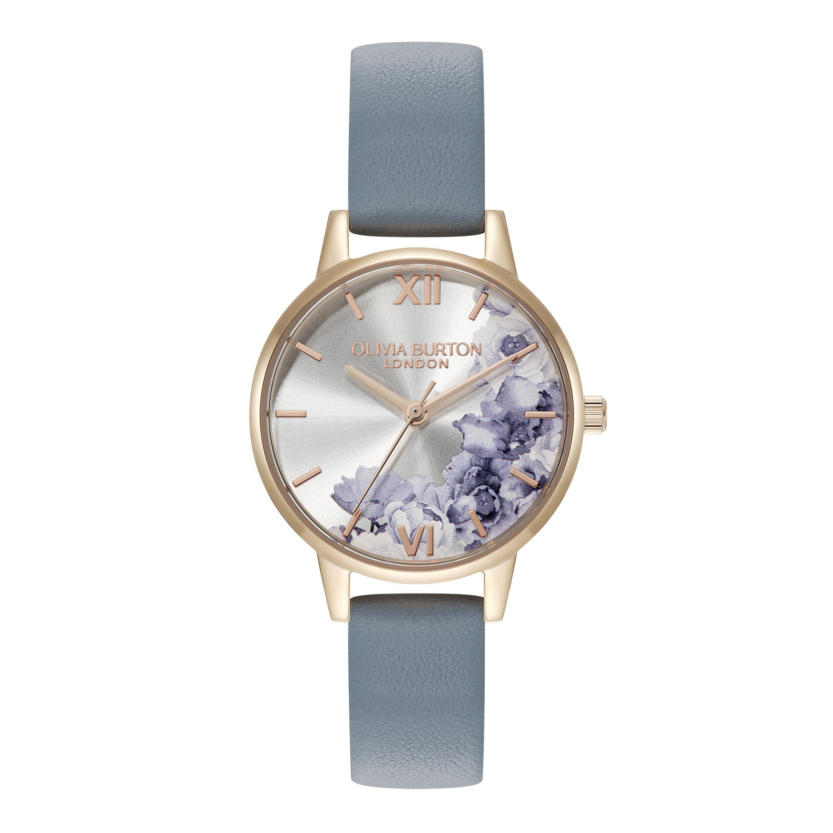 Olivia Burton Watches 30mm Illustrated Florals Rose Gold & Chalk Blue Leather Strap Watch