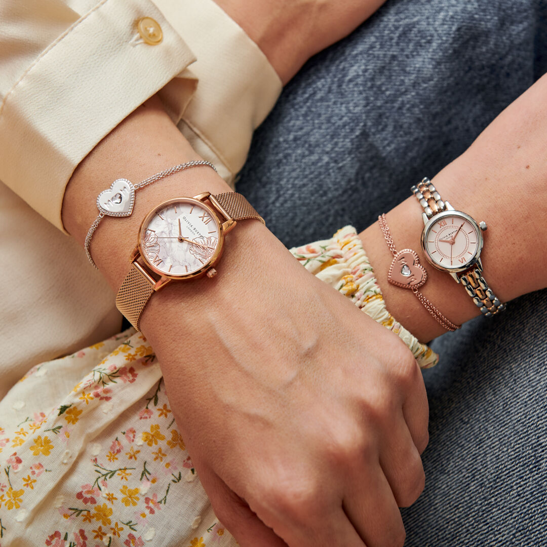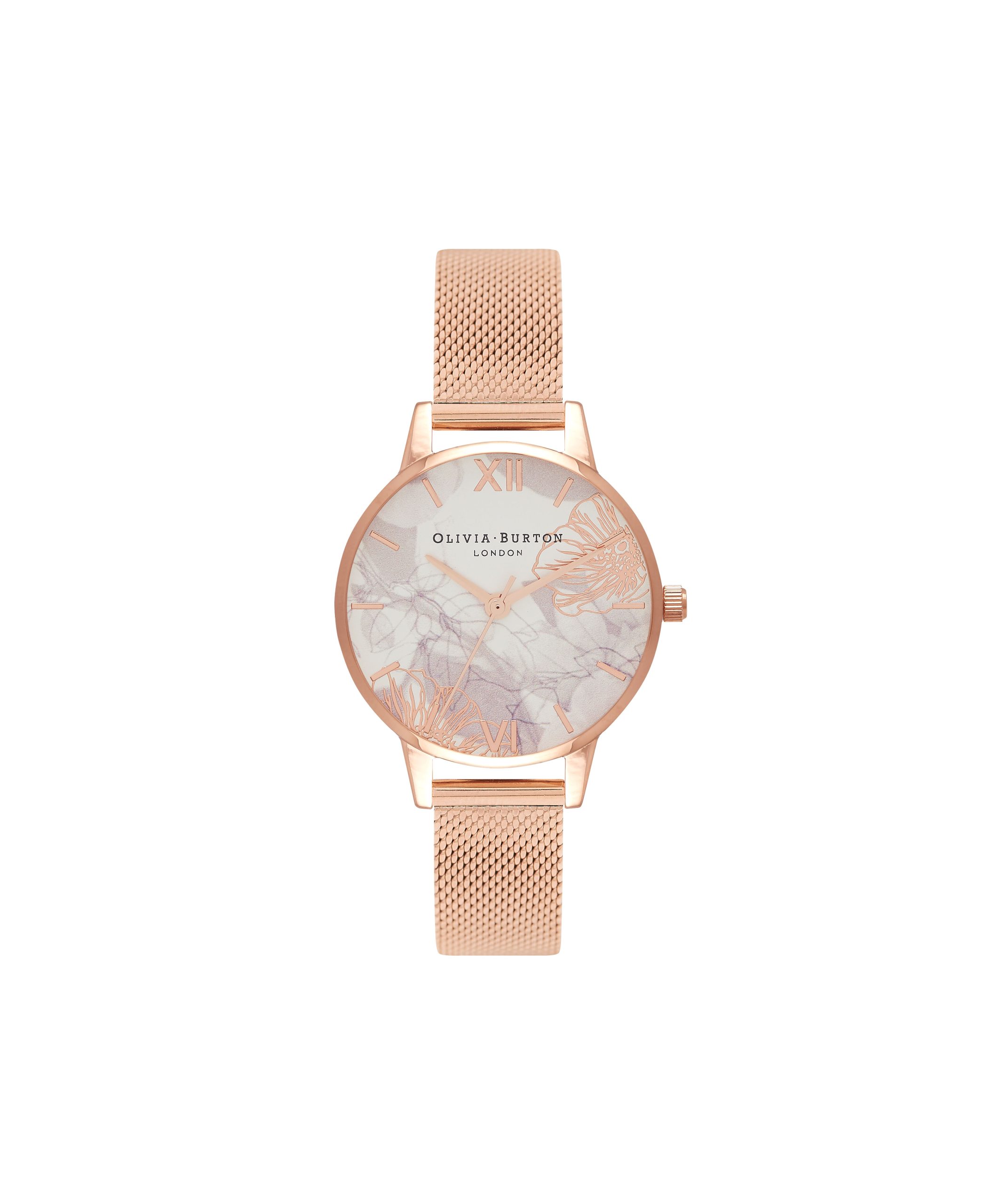 Part of our Abstract Florals collection, this on-trend timepiece works a sand-blasted face that features a carefully screen-printed abstract effect on top. It’s taken to new heights by applied rose gold anemone blooms, which dance across a 30mm-wide midi dial. A rose gold-plated mesh strap continues the luxe mood.