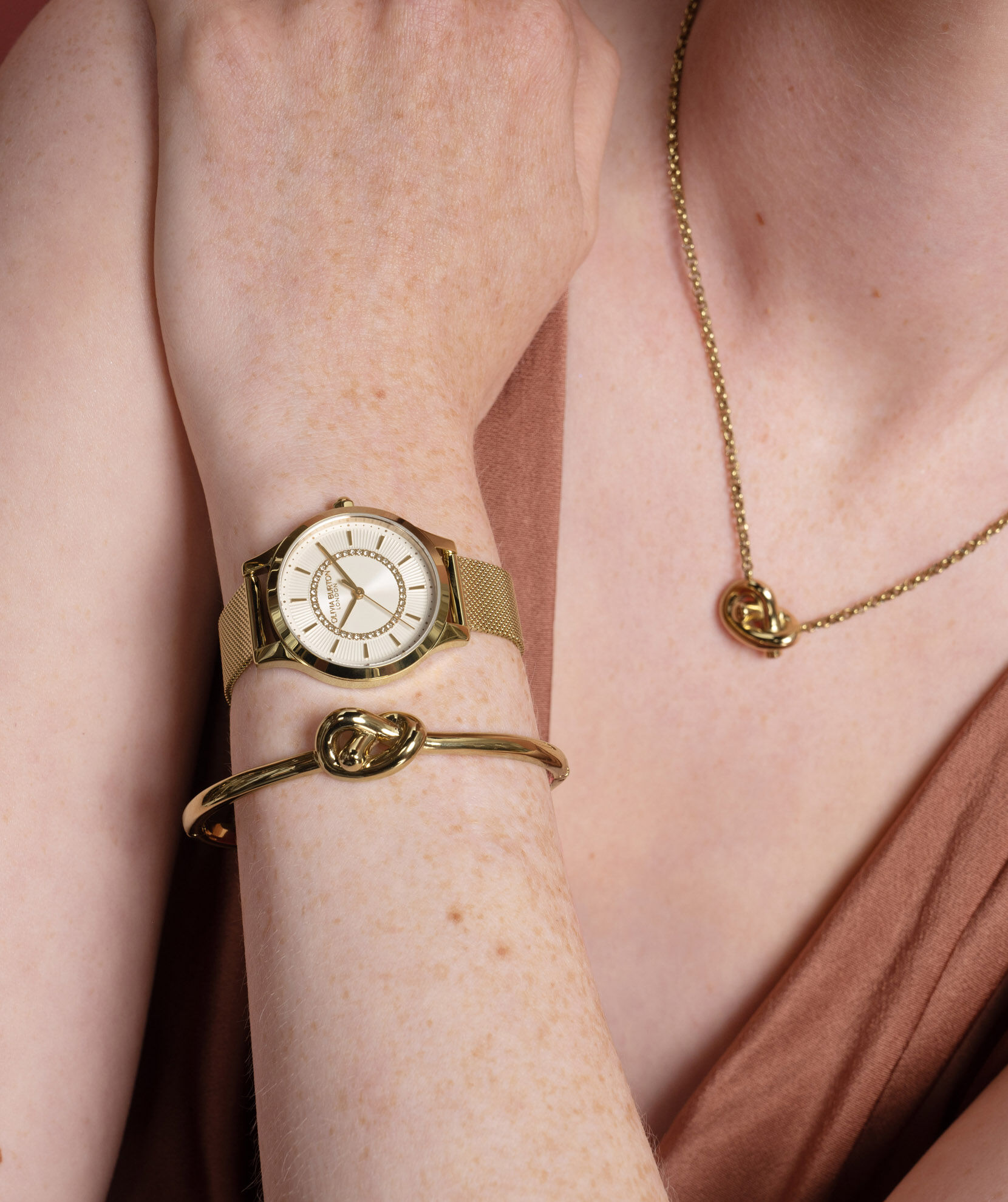 The Wonderlust joins our iconic Wonderland collection for a modern take on elegance. The glowing Ivory sunray dial is framed by our signature sunburst finish for added texture. There’s plenty of detail with crystal-set tracking and tiny golden minute markers around the outer edge. Teamed with a gold-plated case and contemporary mesh strap, this watch is a street style staple.