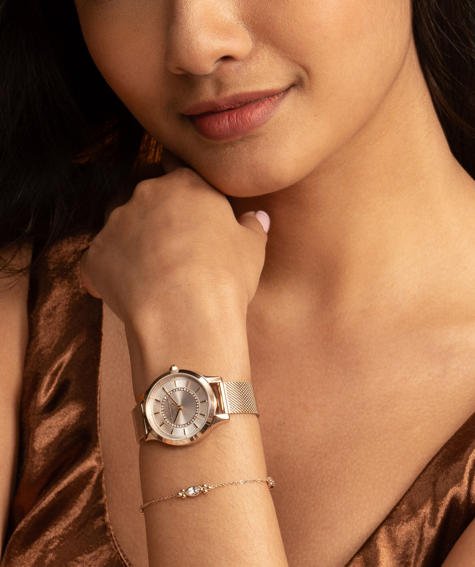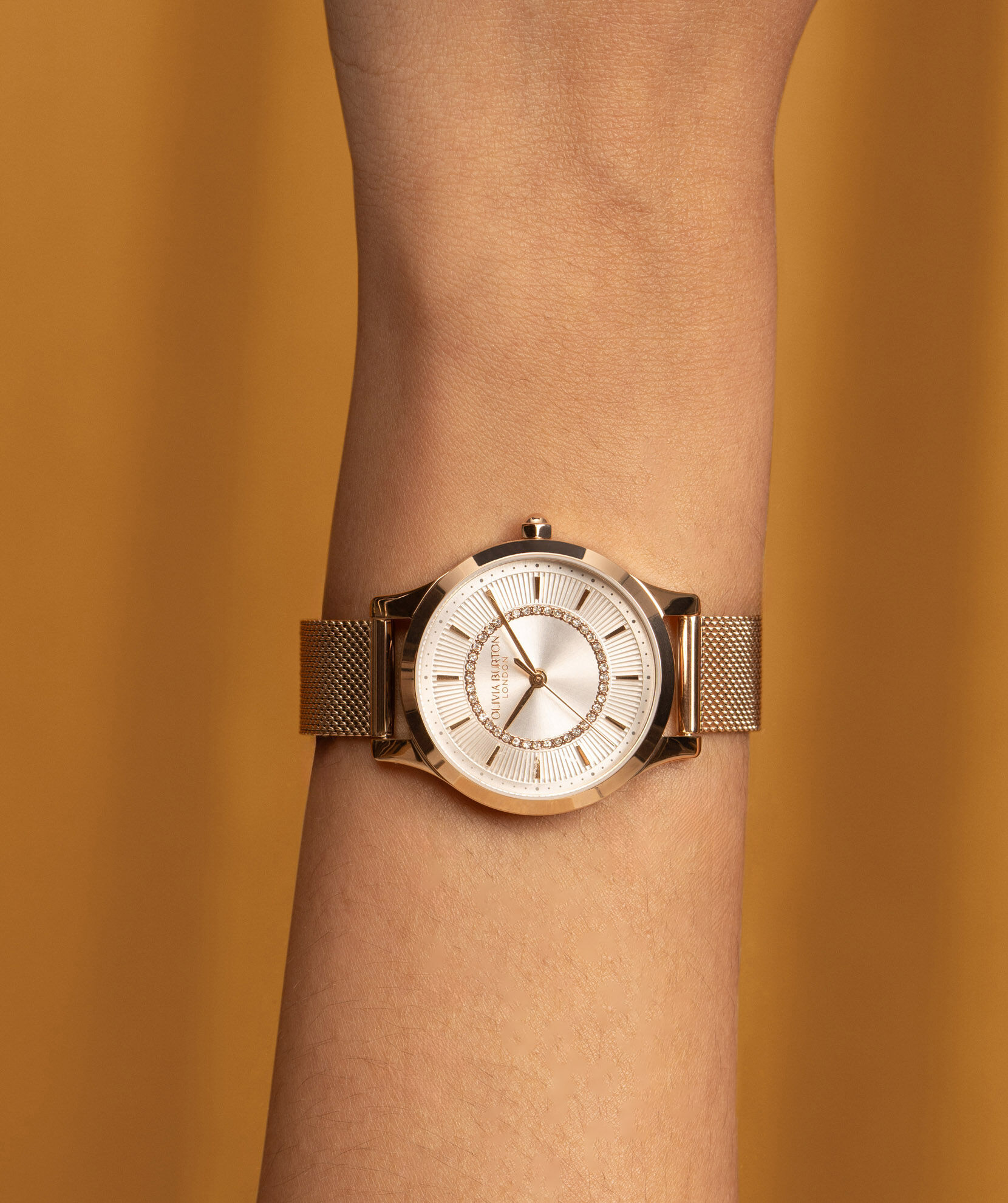 Olivia Burton Watches 30mm Wonderlust White & Rose Gold Mesh Watch