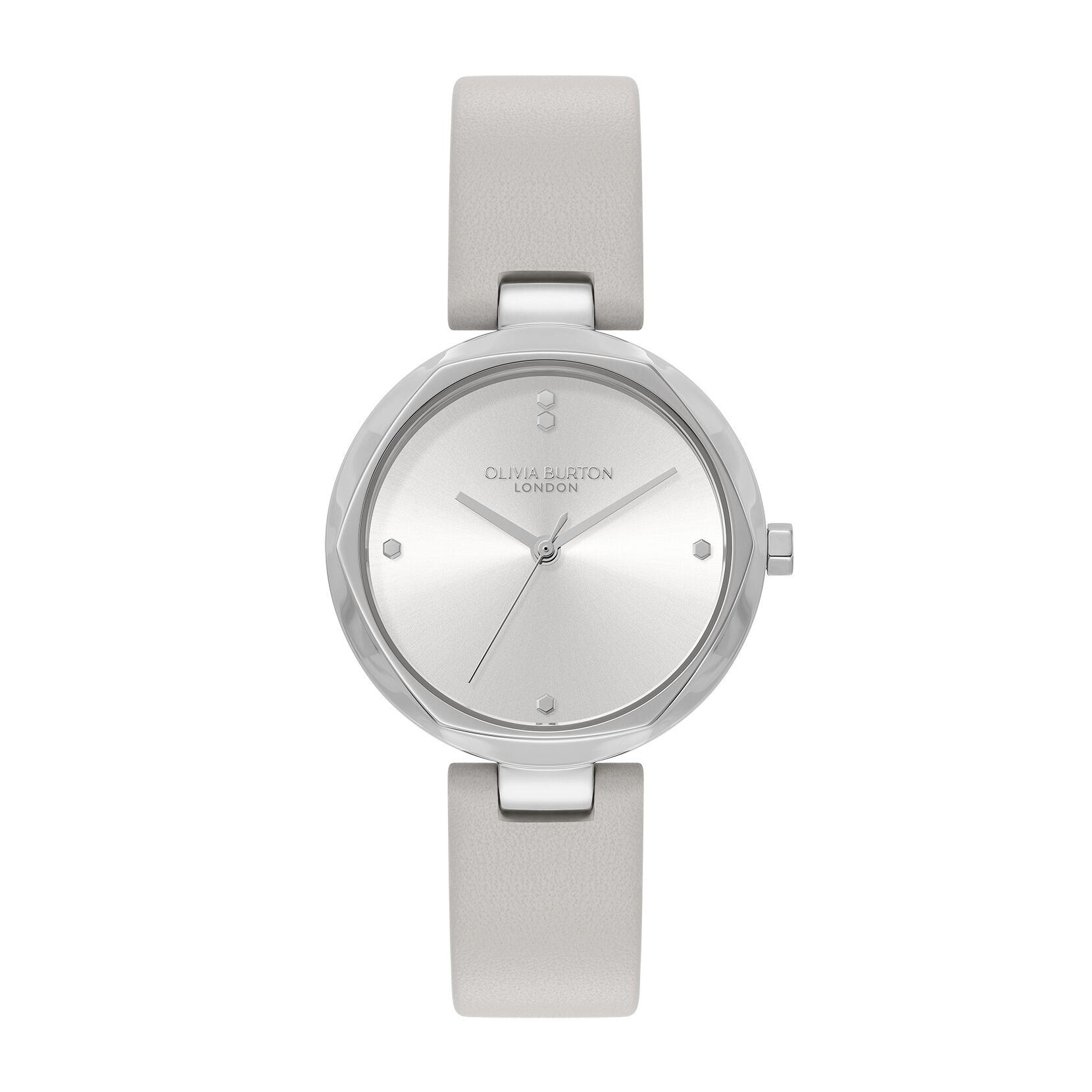 Olivia Burton Watches 32mm Dimension T-bar Silver & Earl Grey Leather Strap Watch