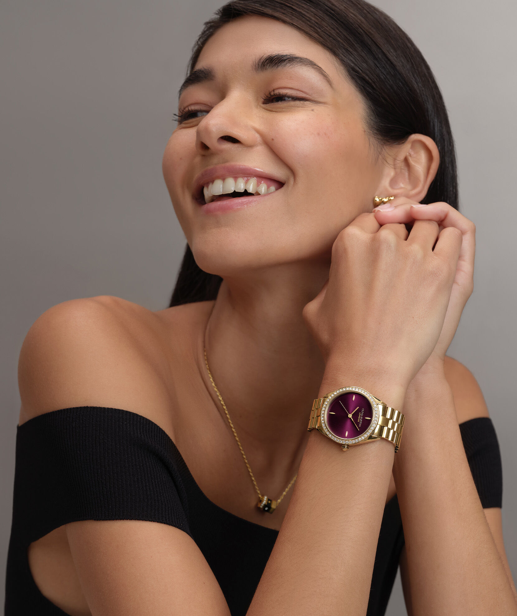 Olivia Burton Watches 34mm Bejewelled Cherry Lacquer & Gold Bracelet Watch