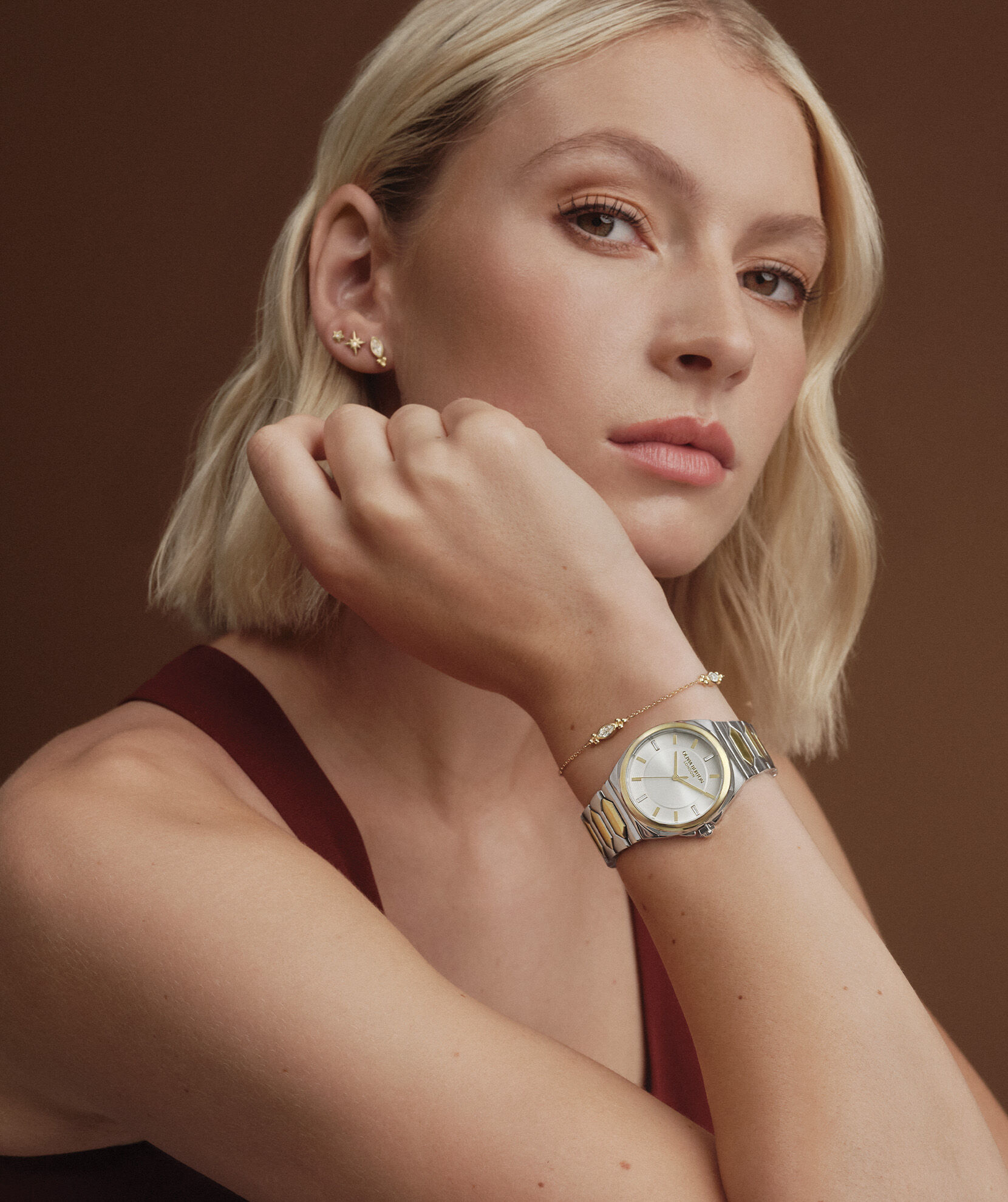 Olivia Burton Watches 34mm Lustre Ivory & Two Tone Bracelet Watch & Dainty Bracelet Gift Set